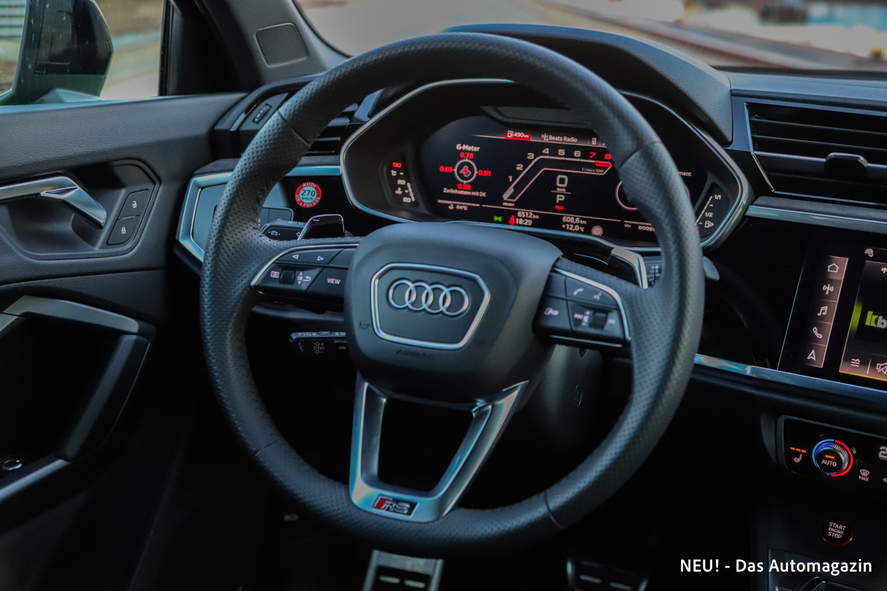 Abseits des Kraftstoffthemas zeigt sich der RS Q3 Sportback als überraschend praktikables Fahrzeug. Die erhöhte Sitzposition erleichtert den Überblick im Verkehr, Ein- und Aussteigen gelingen komfortabel, und das Platzangebot reicht für Alltag und Reisen aus. Auch längere Strecken lassen sich ohne größere Einschränkungen bewältigen, da Sitzkomfort und Geräuschdämmung auf einem guten Niveau liegen.
