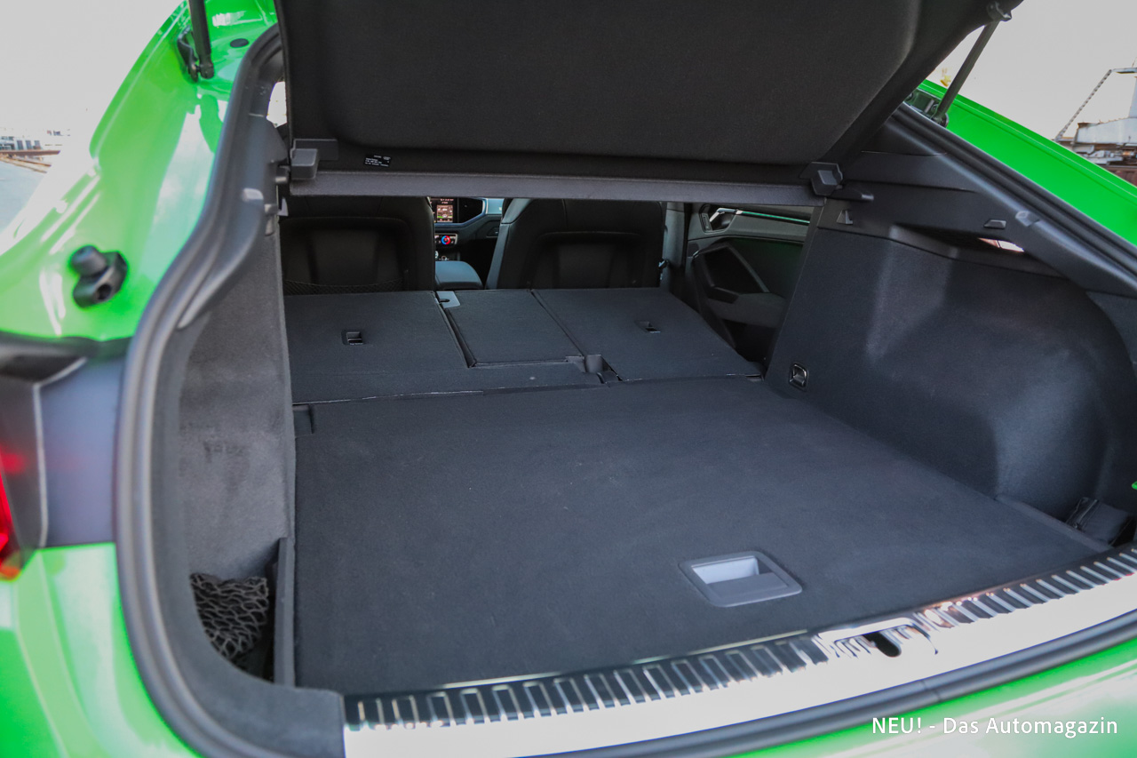 Auch der Fond bietet genügend Raum für Erwachsene, trotz der dynamisch abfallenden Dachlinie, die beim RS Sportback charakteristisch ist. Dies hebt den RS Q3 Sportback von vielen anderen SUV-Coupés ab, die meist im Fond spürbar an Raum einbüßen. Der Kofferraum bietet trotz der sportlichen Form ein solides nutzbares Volumen, wodurch sich der RS Q3 Sportback nicht nur für kurze Ausflüge, sondern auch für Alltagssituationen als praktisches Fahrzeug empfiehlt.