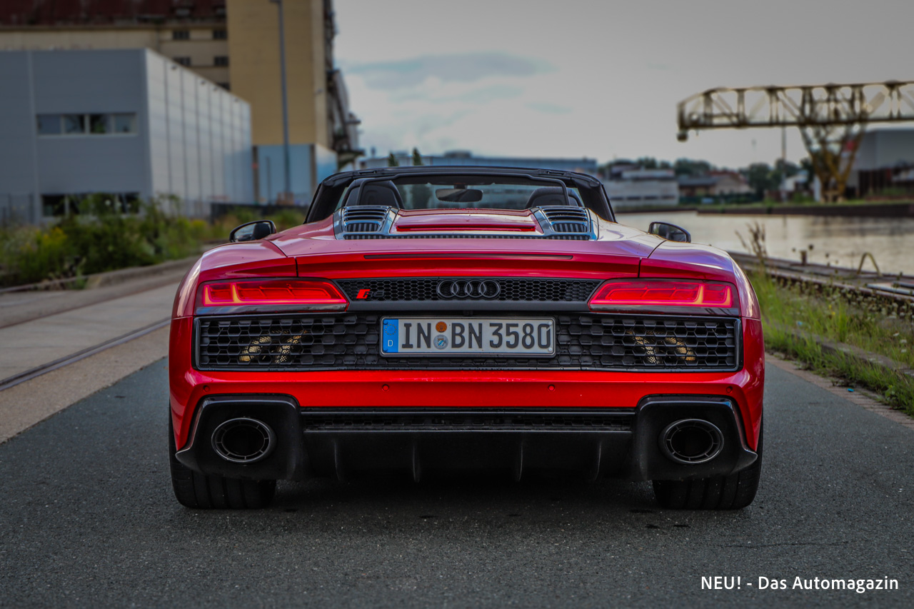 Der Vergleich zum Lamborghini Huracán Spyder (Test des Lamborghini Huracán Evo Spyder) liegt nahe, schließlich teilen sich beide den V10. Doch während der Lamborghini stärker inszeniert, lauter auftritt und weniger Kompromisse eingeht, wirkt der R8 wie die bewusst zugänglichere Interpretation. Weniger Show, mehr Substanz. Oder anders gesagt: das Auto, mit dem man nicht nur ankommt, sondern auch gerne wieder zurückfährt.