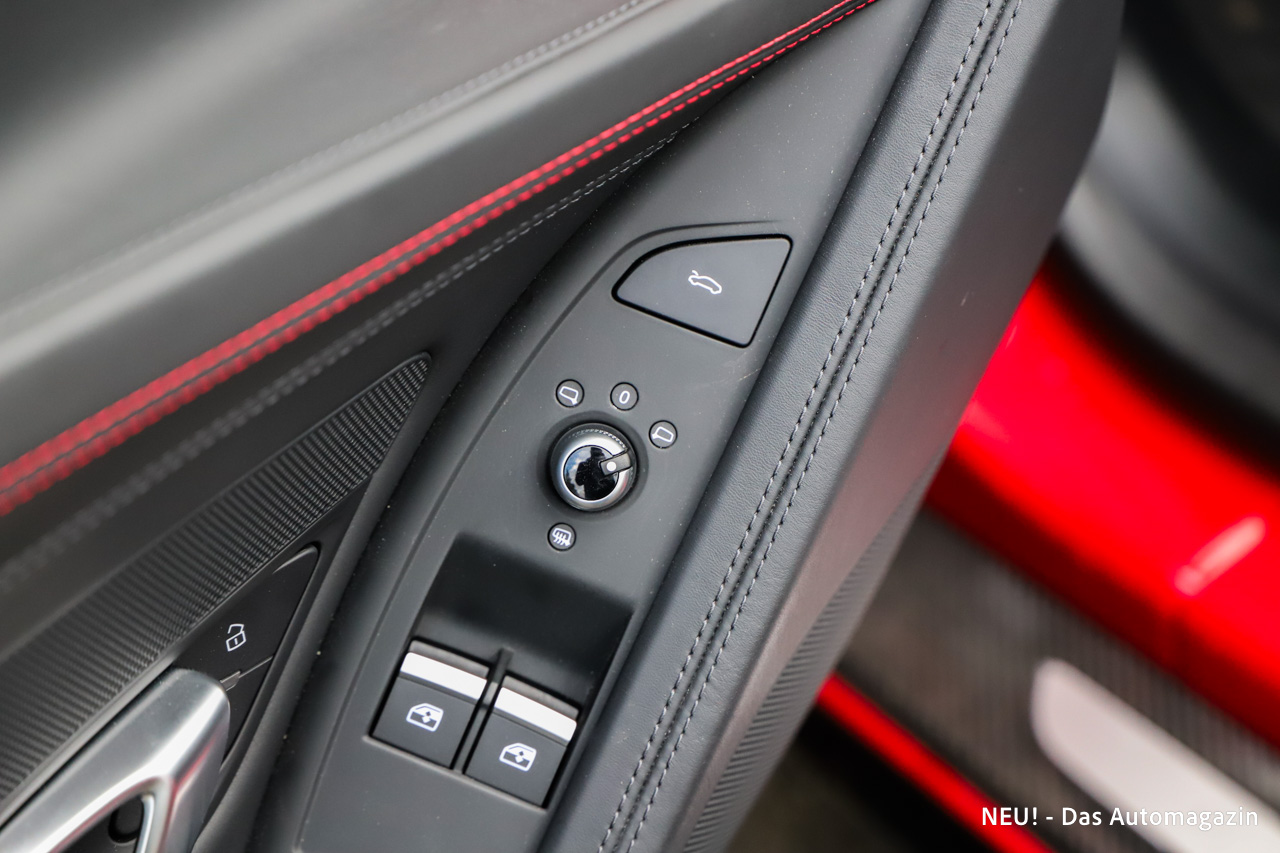 Ganz ohne Kritik kommt der Auftritt trotzdem nicht davon. Die Sideblades in Wagenfarbe nehmen dem Auto genau den Kontrast, den es eigentlich vertragen könnte. Schwarz oder Carbon hätten hier deutlich mehr Spannung erzeugt. Und dann wären da noch die Außenspiegel, die sich nicht elektrisch einklappen lassen. In engen Gassen wird daraus schnell ein kleines Ritual: aussteigen, einmal ums Auto gehen, Spiegel einklappen, wieder einsteigen. Kann man machen. Muss man aber nicht verstehen.