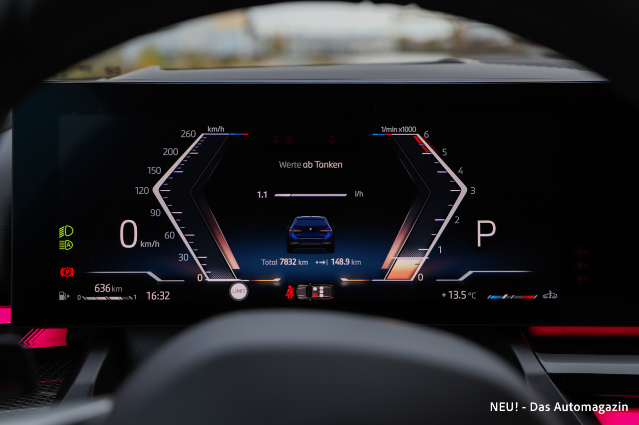 Auch bei höheren Geschwindigkeiten bleibt das Geräuschniveau bemerkenswert niedrig. Bis etwa 180 km/h sind Gespräche in Zimmerlautstärke problemlos möglich. Erst darüber hinaus steigt die akustische Präsenz leicht an, ohne jedoch jemals störend zu wirken. Dröhnen unter Volllast? Kennt dieser BMW nicht.