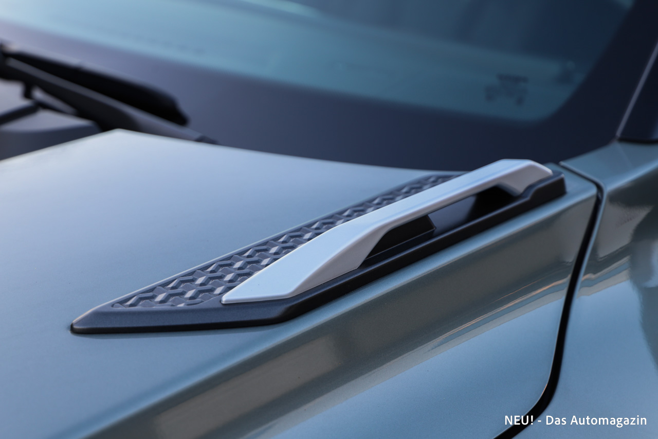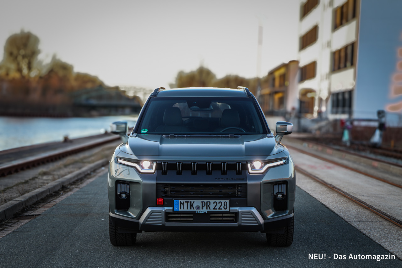 Die Front wirkt entsprechend selbstbewusst. Schmale Leuchten sitzen hoch in der Karosserie, darunter spannt sich eine breite Grillstruktur über die gesamte Fahrzeugbreite. Das Ganze vermittelt weniger den Eindruck eines modischen Lifestyle-SUV und mehr den eines Fahrzeugs, das zumindest optisch gern nach Abenteuer aussehen möchte.