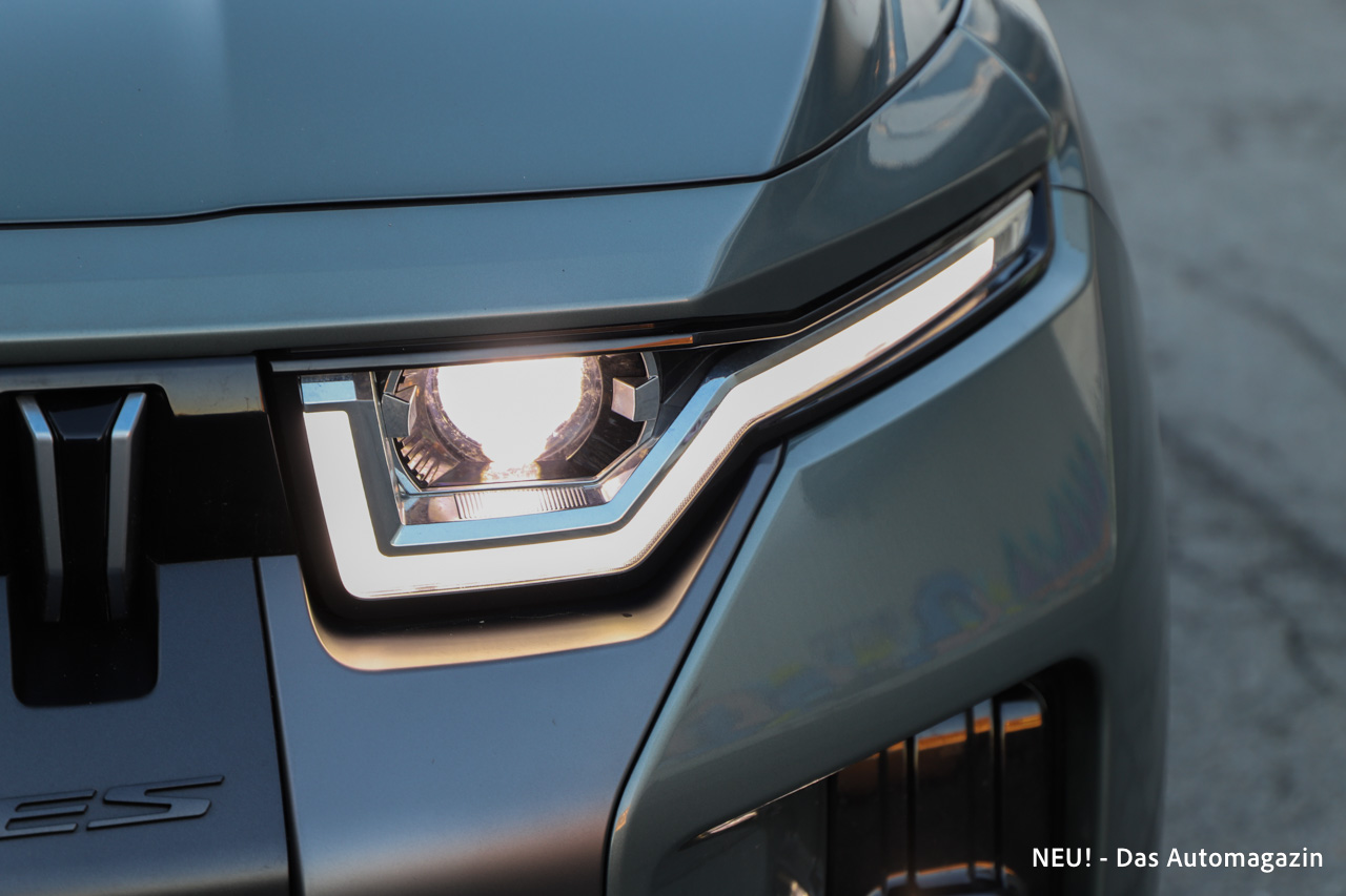 Ähnlich verhält es sich mit den Voll-LED-Scheinwerfern. Sie leisten gute Arbeit, ohne besondere technische Highlights zu bieten. Das Lichtbild ist gleichmäßig und ausreichend hell, doch auf adaptive Funktionen oder Kurvenlicht muss man verzichten. Gerade auf dunklen Landstraßen merkt man, dass andere Hersteller hier inzwischen ein Stück weiter sind.