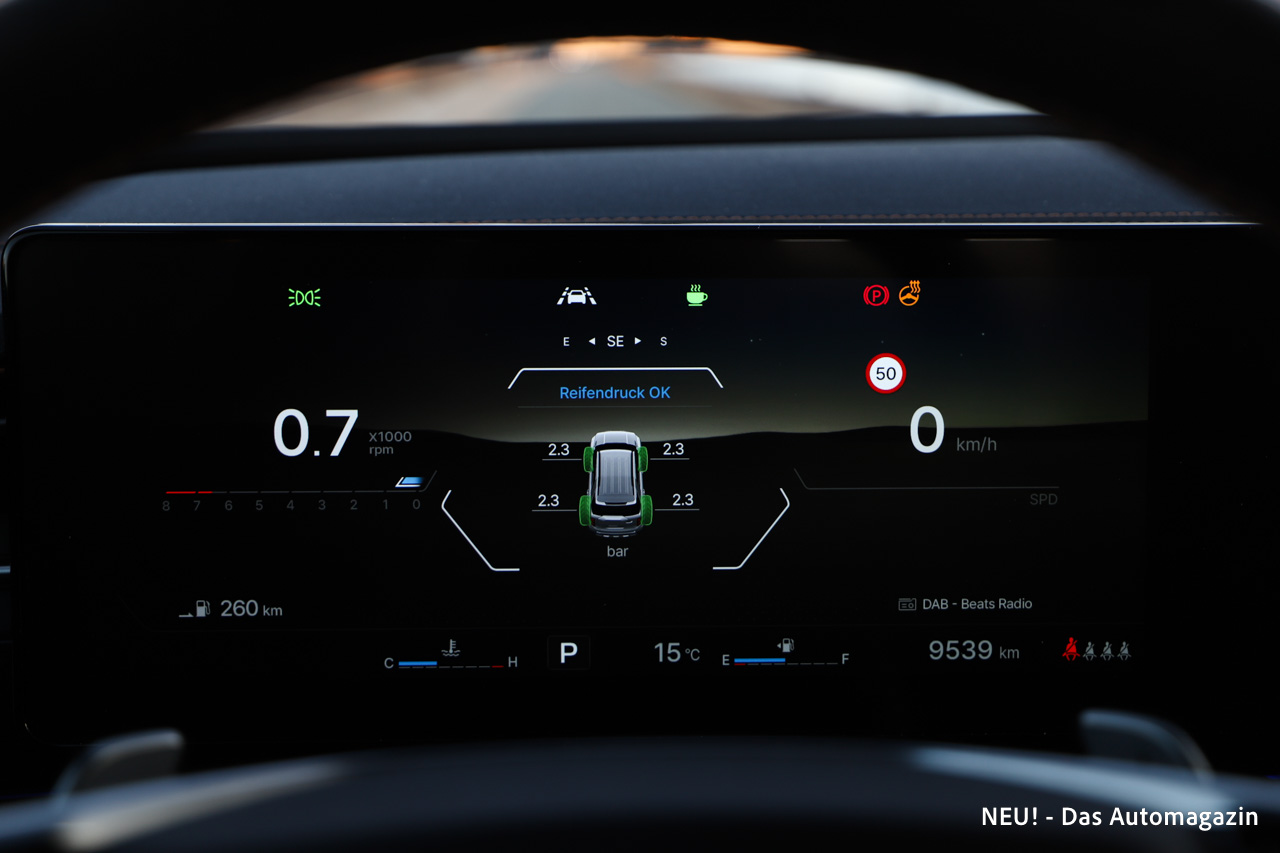 Der 50-Liter-Tank sorgt dabei für eine praxisgerechte Reichweite. Wer nicht permanent auf der Autobahn unterwegs ist, kann problemlos mehrere hundert Kilometer zurücklegen, bevor der nächste Tankstopp ansteht. Für ein SUV dieser Größe ist das vollkommen akzeptabel.