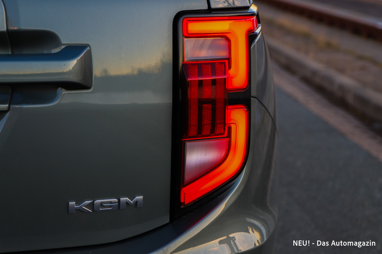 Am Heck greift KGM schließlich zu einem besonders auffälligen Trick. Die Heckklappe imitiert eine außen montierte Reserveradbox – ein klassisches Merkmal vieler Geländewagen. In Wirklichkeit verbirgt sich dahinter natürlich einfach der normale Kofferraum. Trotzdem verleiht dieses Detail dem Fahrzeug einen unverwechselbaren Auftritt.