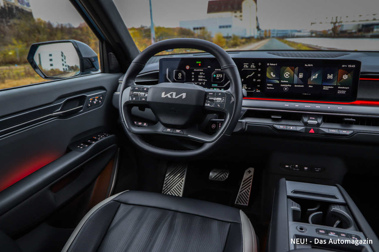 Die Vordersitze bleiben die bekannten Premium Relaxation Seats mit Liegefunktion, Belüftung und Heizung. Auch in der zweiten Reihe stehen weiterhin Klimatisierungskomfort und hochwertige Polsterungen zur Verfügung. Die Materialauswahl wirkt modern, weich und bewusst reduziert. Kia hält am nachhaltigen Ansatz fest, ohne jedoch Verzicht zu suggerieren. Oberflächen, Nähte und Bedienelemente sind sorgfältig verarbeitet und vermitteln den Anspruch, in dieser Klasse dauerhaft ernst genommen zu werden.
