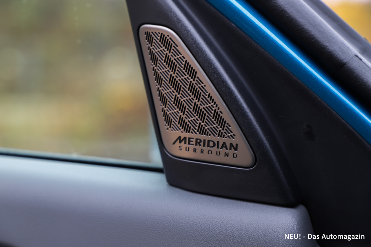 Infotainmentseitig überzeugt das große, durchgehende Display mit scharfer Darstellung und logischer Menüführung. Die Integration von Smartphone-Funktionen gelingt kabellos und stabil. Hinzu kommt ein Meridian-Soundsystem, das im Test mit klarer Wiedergabe und druckvollen Bässen punktete.