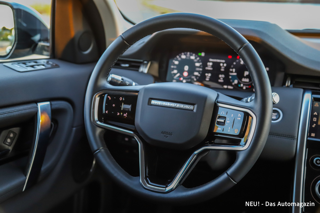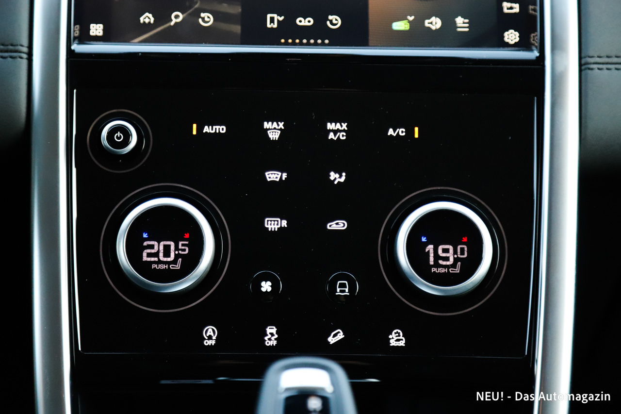 Das Cockpit ist logisch aufgebaut, hochwertig verarbeitet und erfreulich frei von digitalem Aktionismus. Zwar bietet der Discovery Sport ein optionales digitales Kombiinstrument sowie einen zentralen Touchscreen, doch Land Rover hat darauf verzichtet, sämtliche Funktionen in Untermenüs zu verbannen. Klimatisierung, Sitzfunktionen und Fahrmodi lassen sich weiterhin über echte Drehregler und Tasten steuern. Diese sind teilweise doppelt belegt, was zunächst ungewohnt wirkt, sich im Alltag aber als äußerst praktikabel erweist. Gerade während der Fahrt zahlt sich dieses Konzept aus.