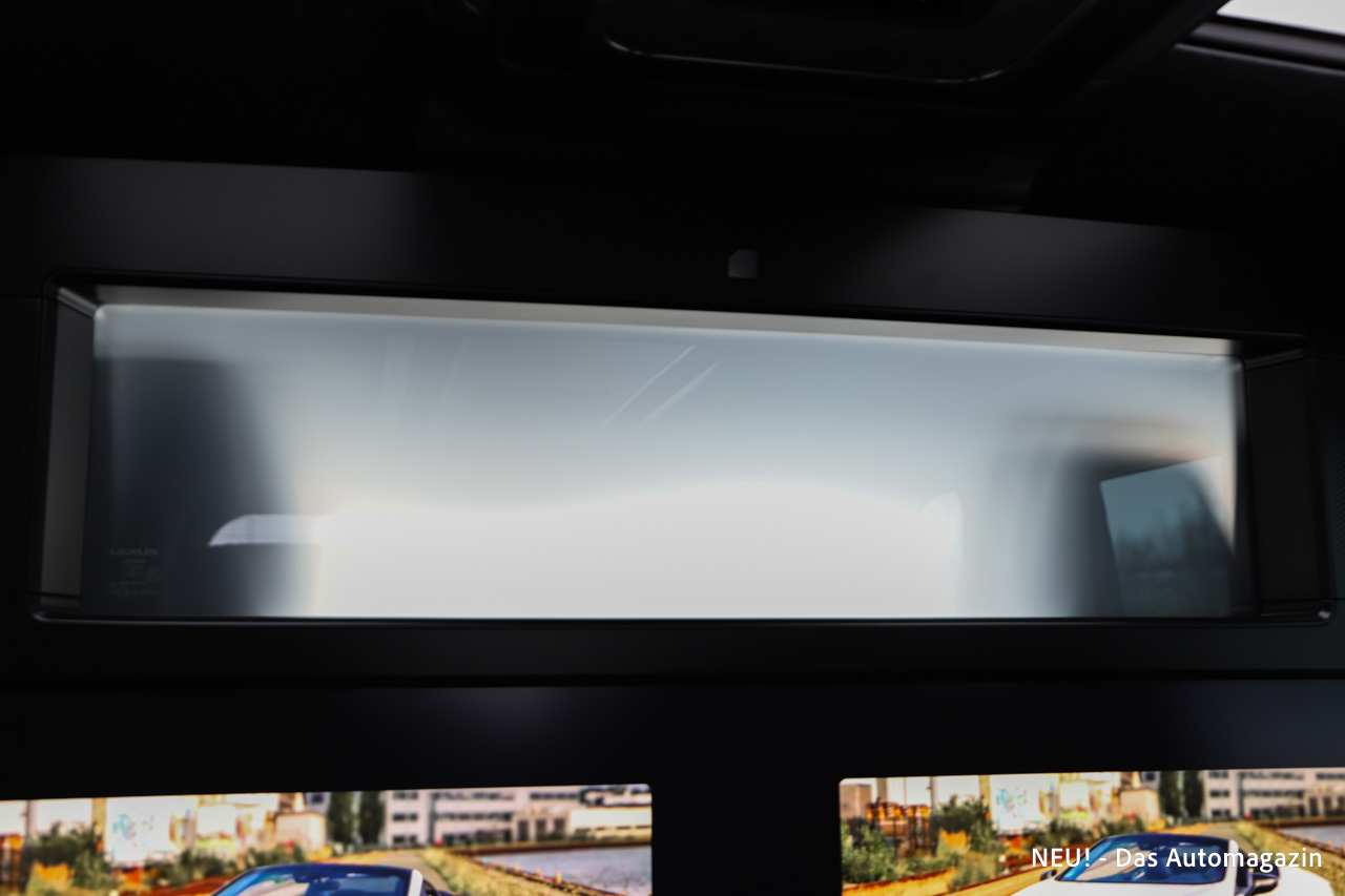 Ein gutes Beispiel ist der digitale Rückspiegel. In vielen Autos ein nettes Gimmick, hier schlicht notwendig. Sobald hinten die Privatsphäre aktiviert und die Trennscheibe milchig wird, ist der klassische Blick nach hinten Geschichte. Der digitale Spiegel übernimmt dann kommentarlos – und verhindert, dass der Fahrer komplett im Blindflug unterwegs ist.