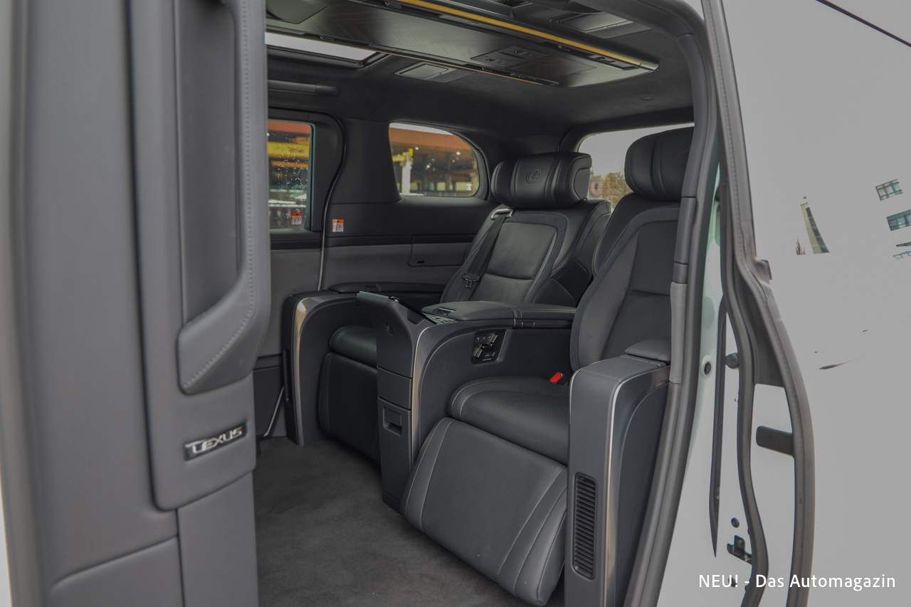 Im Vergleich zu einer klassischen Luxuslimousine verschiebt der LM die Prioritäten spürbar. Eine Mercedes S-Klasse in Langversion oder selbst ein BMW 7er bieten zweifellos ein hohes Maß an Komfort, kommen aber allein durch ihre Bauform nicht an dieses Raumgefühl heran. Der bekannte „Theatre Screen“ im 7er (Test des BMW 740d xDrive) wirkt mit seinen 31 Zoll plötzlich fast kompakt. Und auch eine gut ausgestattete V-Klasse bleibt beim Thema Luxus eher im Bereich „Business“ stehen, während der LM klar Richtung „First Class“ abbiegt. Ach ja: in den Kofferraum passen immerhin 752 Liter hinein.