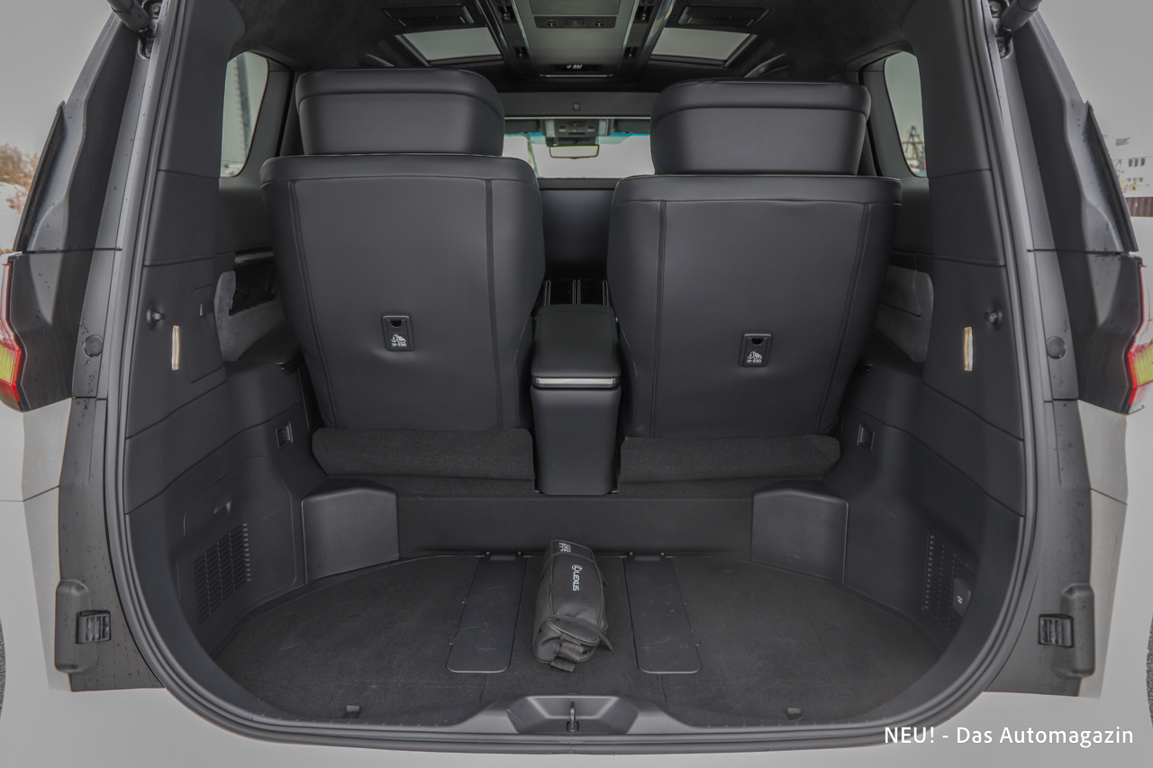 Schon die getestete 4-Sitzer-Variante („Luxury“) macht keinen Hehl daraus, wo hier die Prioritäten liegen. Die beiden Einzelsitze im Fond wirken weniger wie Autositze und mehr wie zwei perfekt abgestimmte Lounge-Sessel. Sitzheizung, Belüftung, Massage – alles da. Dazu eine Liegefunktion mit ausfahrbarer Beinauflage, die den Begriff „Langstrecke“ neu definiert. Wer hier einmal Platz nimmt, entwickelt sehr schnell wenig Motivation, das Fahrzeug wieder zu verlassen. In unserem Fall brauchte es tatsächlich mehr als eine freundliche Erinnerung, dass das Ziel längst erreicht war.