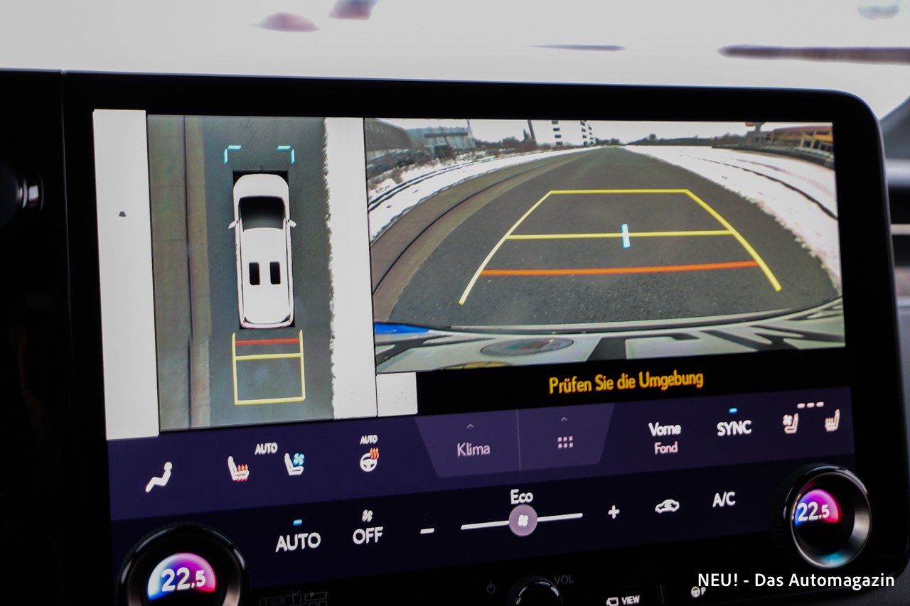 Beim Rangieren wird schnell klar, dass Größe hier nicht nur ein theoretisches Thema ist. Die 360-Grad-Kamera liefert ein scharfes Bild und hilft enorm dabei, den LM durch enge Parklücken zu manövrieren, ohne dabei jedes Mal kurz über die eigene Lebensentscheidung nachzudenken.