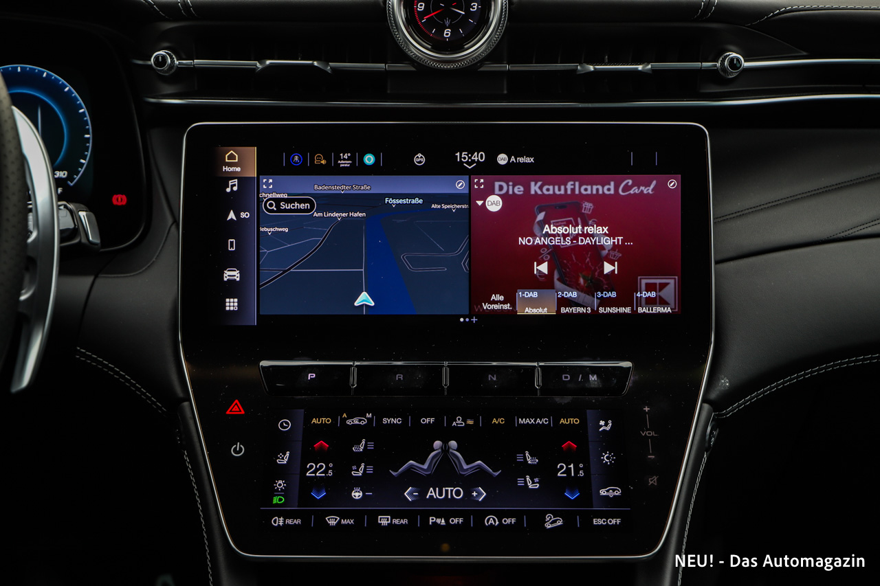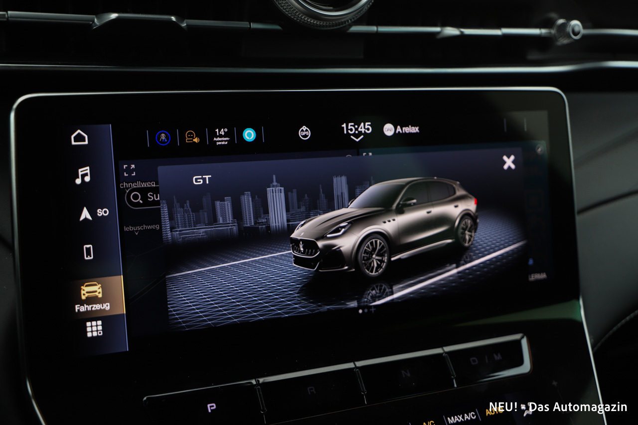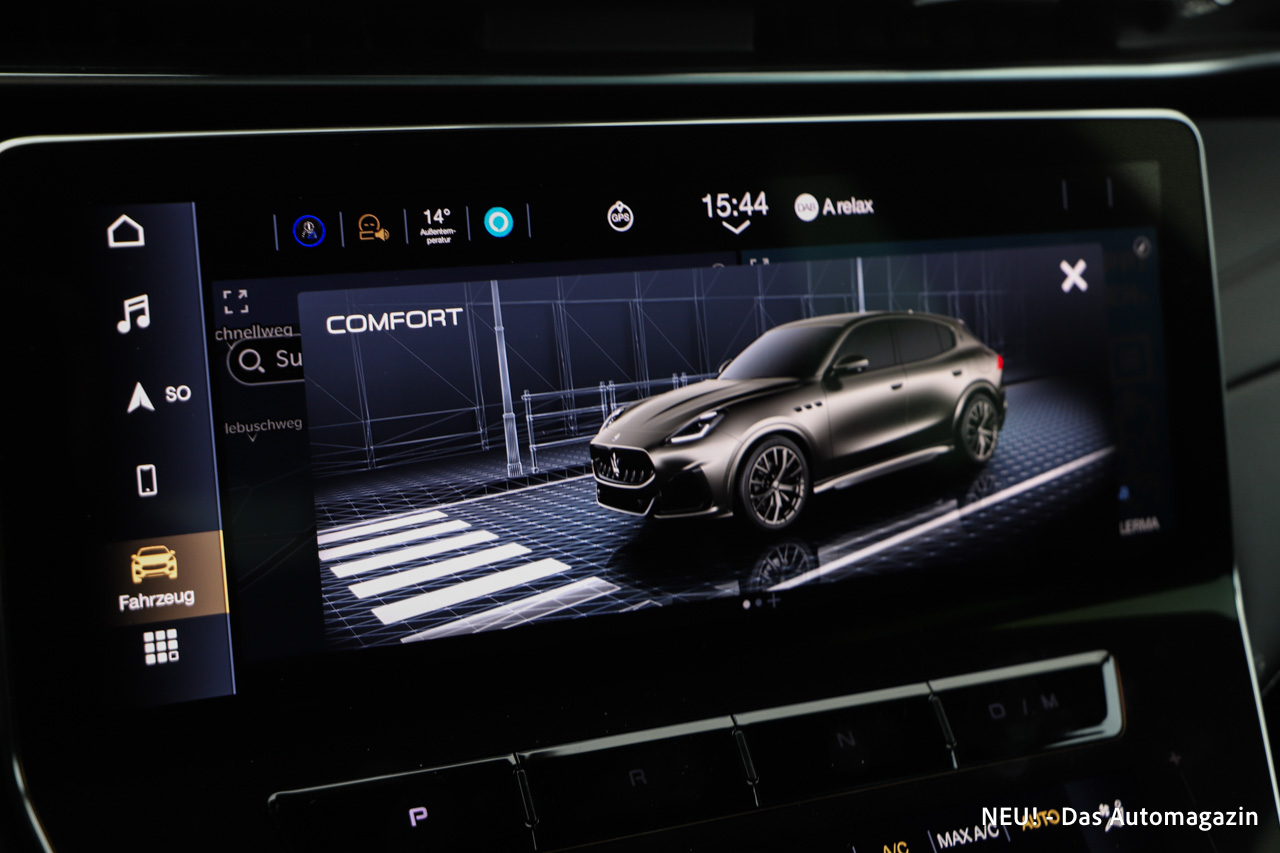 Die Bedienung ist allerdings stark touch-zentriert. Für Maserati-Puristen könnte das ein Streitpunkt werden, denn physische Knöpfe existieren praktisch nicht mehr, nicht einmal für die Lautstärke. Im Alltag überzeugte das System jedoch durch schnelle Reaktionen und klare Menüstrukturen. Dennoch: Wer bisher von Maseratis Analog-Charme lebte, wird hier eine Umstellung erleben.