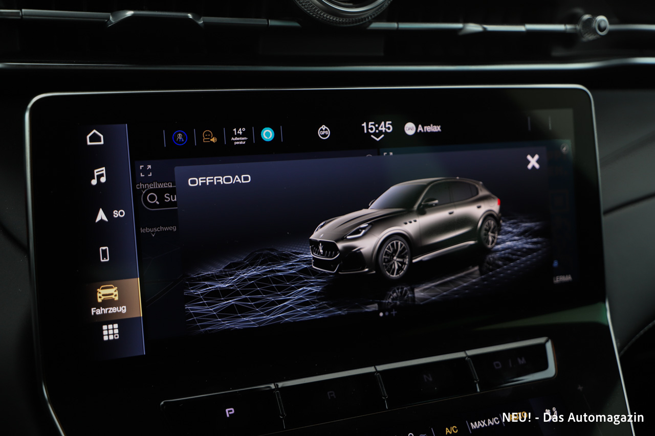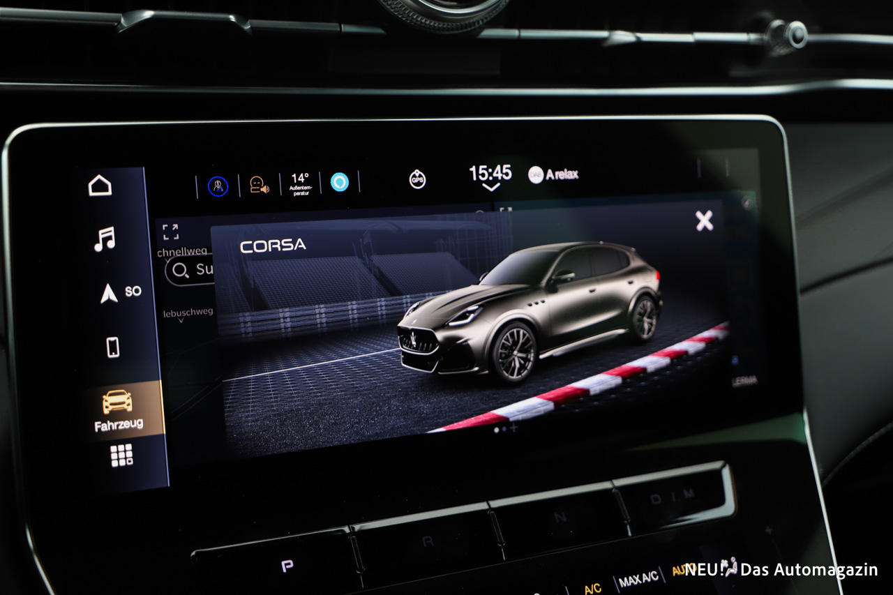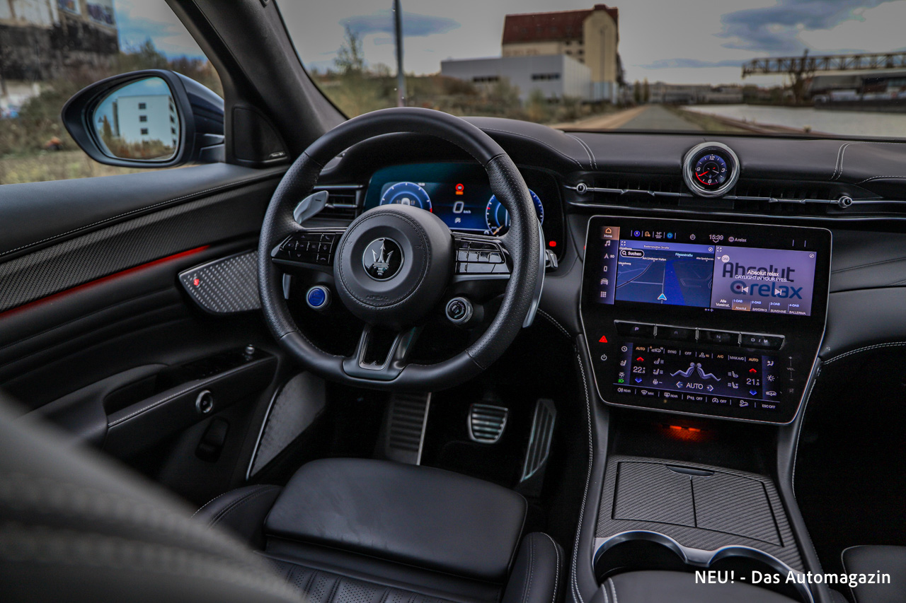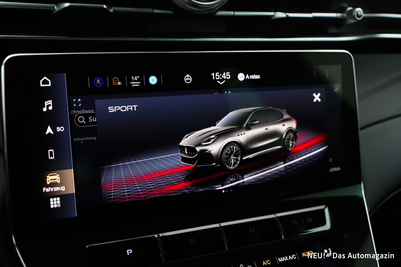 Die Bedienung ist allerdings stark touch-zentriert. Für Maserati-Puristen könnte das ein Streitpunkt werden, denn physische Knöpfe existieren praktisch nicht mehr, nicht einmal für die Lautstärke. Im Alltag überzeugte das System jedoch durch schnelle Reaktionen und klare Menüstrukturen. Dennoch: Wer bisher von Maseratis Analog-Charme lebte, wird hier eine Umstellung erleben.