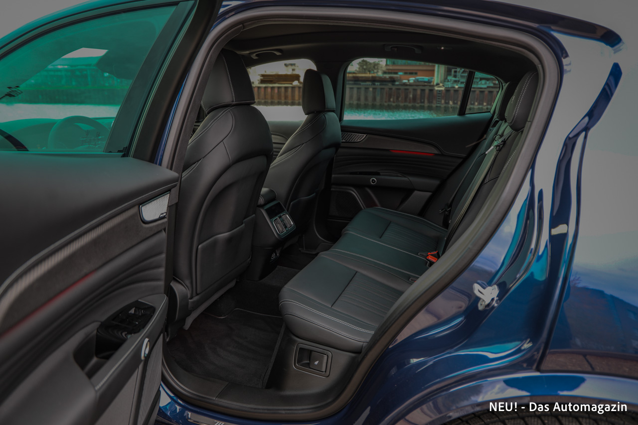 Hinten bietet der Grecale Trofeo ausreichend Platz. Der Einstieg ist bequem, die Beinfreiheit gut, die Sitzposition angenehm aufrecht. Die hinteren Sitzheizungen aus dem Klima-Paket erwiesen sich an kalten Testtagen als wertvoll, während die Belüftung der vorderen Sitze im Sommer ein Muss ist.