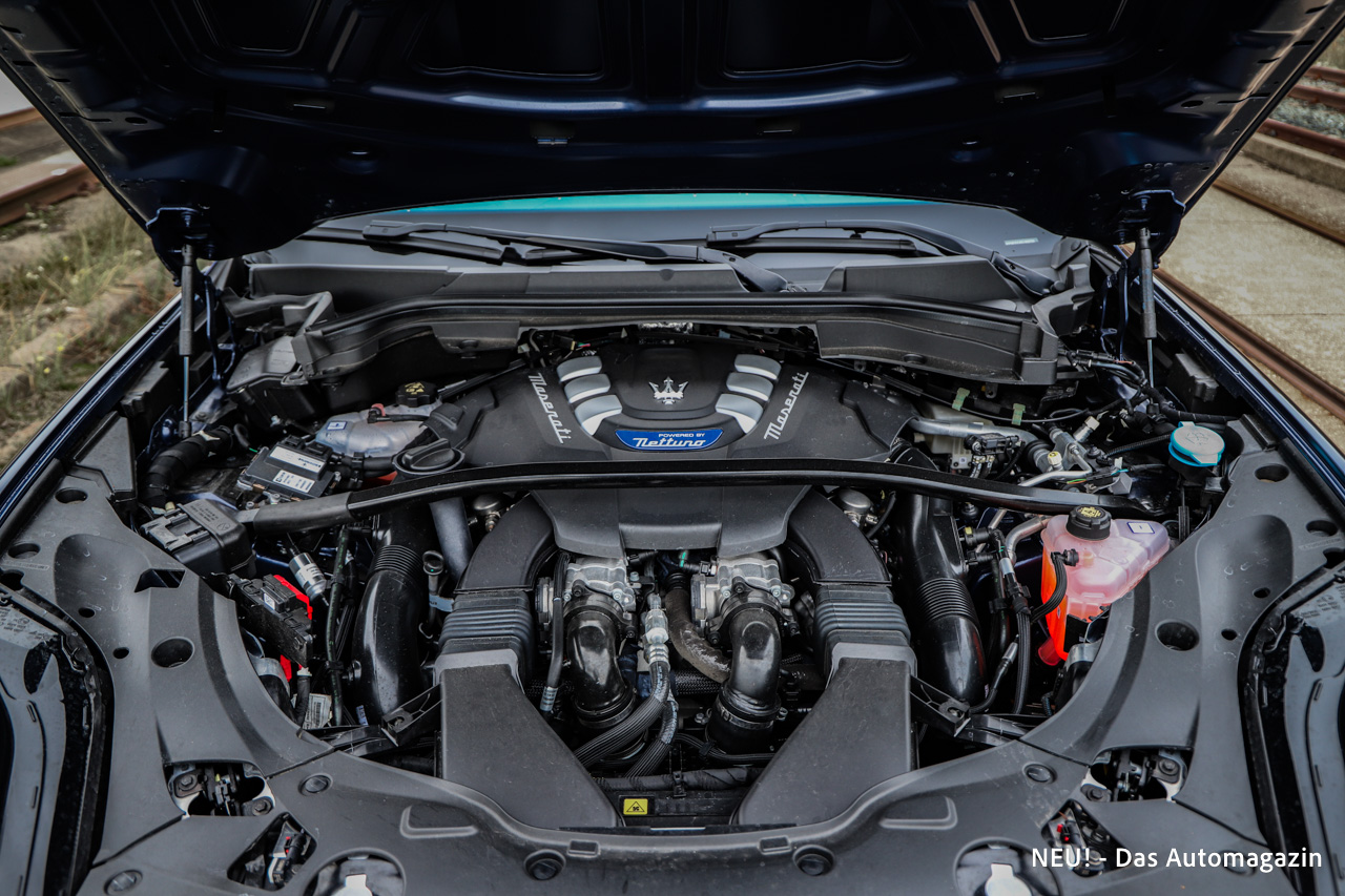 Auf der Landstraße zeigt der V6 seine beste Seite. Er dreht frei, baut Tonalität auf und bleibt dabei spürbar mechanisch. Viele moderne Turbomotoren wirken synthetisch – dieser hier nicht. Maserati hat dem Trofeo eine Kraftentfaltung gegeben, die nicht nur schnell, sondern auch charaktervoll ist.