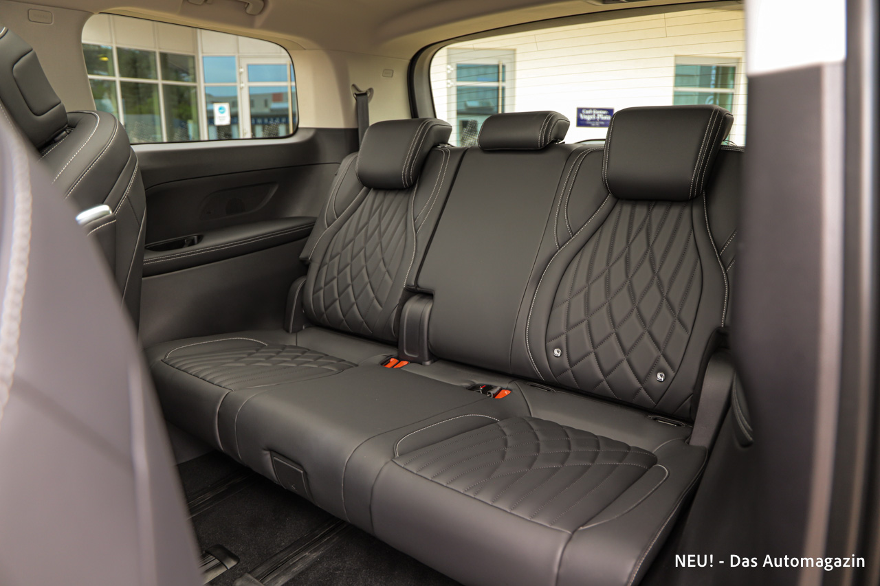 Der eigentliche Fokus liegt jedoch im Fond. Hier bietet der Mifa 9 ein Raumangebot, das sich deutlich an Chauffeur- und Shuttle-Konzepte anlehnt. Zwei großzügige Einzelsitze in der zweiten Reihe sorgen für hohen Sitzkomfort und lassen sich vielfältig verstellen. Je nach Ausstattung sind Belüftung, Heizung und Massage an Bord. Der Einstieg gelingt dank großer Schiebetüren mühelos. Auch die dritte Sitzreihe bietet ausreichend Platz für Erwachsene, wenngleich sie eher als komfortable Ergänzung denn als Lounge gedacht ist.