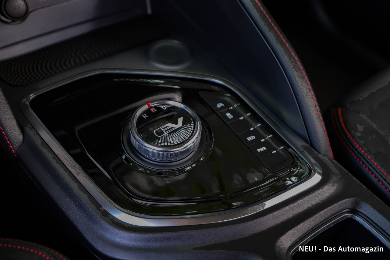 Die Bedienung der Fahrstufen erfolgt über einen Drehregler in der Mittelkonsole. Eine klassische Parkstellung ist dabei nicht vorhanden. Stattdessen muss das Fahrzeug in Neutralstellung abgestellt und zusätzlich über die Feststellbremse gesichert werden.