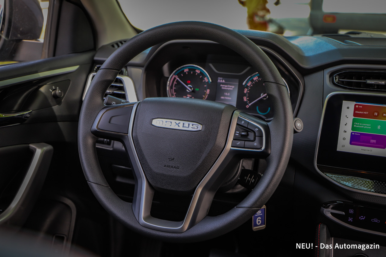 Im praktischen Einsatz kann der tatsächliche Verbrauch jedoch variieren. Während unserer ersten Testfahrten zeigte der Bordcomputer einen Durchschnittswert von 18,6 kWh pro 100 Kilometer an. Damit blieb der Maxus T90 EV deutlich unterhalb der offiziellen Herstellerangabe.