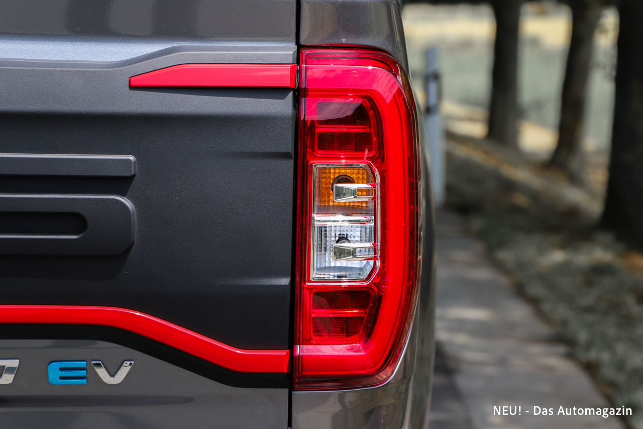 Im Vergleich zu elektrischen Pkw fällt dieser Wert moderat aus. Für den typischen Einsatzbereich eines Pick-ups im regionalen Umfeld kann er jedoch ausreichend sein.