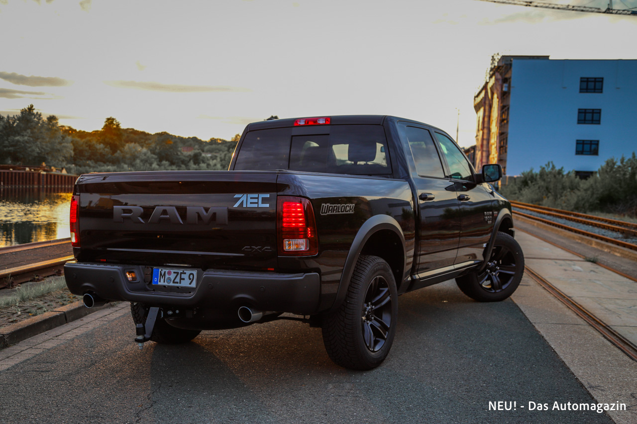 Die Warlock-Version setzte zusätzlich auf ein durchgängiges Schwarzkonzept. Felgen, Schriftzüge und Designelemente waren dunkel gehalten und unterstrichen die martialische Anmutung des Fahrzeugs. Diese Gestaltung passte perfekt zur breiten Spur und zu den wuchtigen Proportionen, die den RAM 1500 Classic schon aus der Distanz als amerikanischen Pick-up identifizierbar machten.