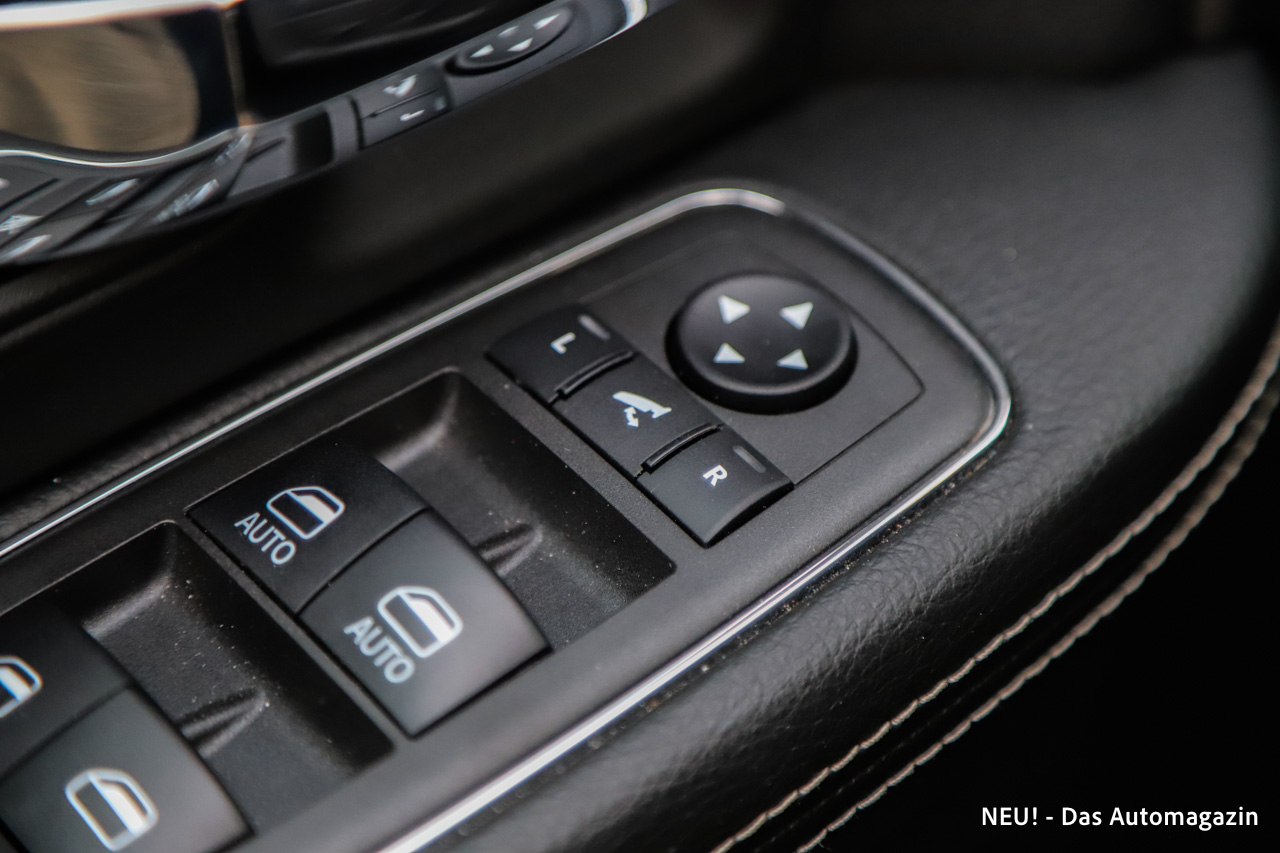 Das Cockpit war überwiegend analog ausgeführt und ergänzte klassische Rundinstrumente mit einem zentralen Informationsdisplay. Der 8,4-Zoll-Touchscreen wirkte angesichts der enormen Innenraumdimensionen fast klein, erwies sich aber nach kurzer Eingewöhnung als gut bedienbar. Besonders positiv fiel die Vielzahl an physischen Tasten und Drehreglern auf, die eine einfache Steuerung während der Fahrt ermöglichten.