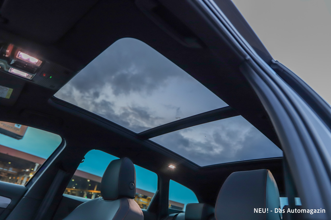 Das Raumgefühl profitiert dabei spürbar vom Kombi-Zuschnitt. Zwar bewegt sich der Leon weiterhin im Kompaktsegment, doch gerade auf den hinteren Plätzen entsteht durch den längeren Dachverlauf ein luftigerer Eindruck als im Hatchback. Unterstützt wird das durch das optionale Panorama-Glasdach, das zusätzlich Licht in den Innenraum bringt. Auch im Fond bleibt die Kopffreiheit selbst für größere Mitfahrer ausreichend.