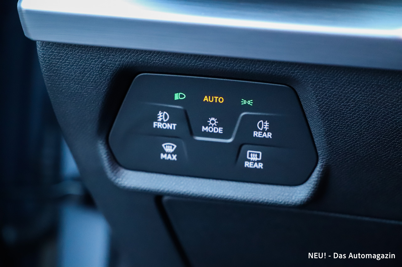Die Matrix-LED-Scheinwerfer gehören zu den Highlights der Ausstattung. Sie sorgen nicht nur für eine homogene Ausleuchtung der Fahrbahn, sondern passen den Lichtkegel dynamisch an die Verkehrssituation an. Gerade auf unbeleuchteten Landstraßen erhöht das die Sichtweite deutlich, ohne entgegenkommende Fahrzeuge zu blenden. In Kombination mit der automatischen Fernlichtfunktion entsteht ein spürbarer Komfortgewinn bei Nachtfahrten.