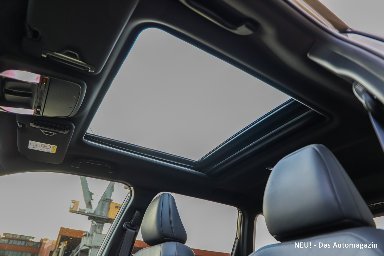 Unser Testwagen in der Ausstattungslinie Platinum verfügte über schwarze Ledersitze mit braunen Kontrastnähten, die zusammen mit schicken Interieurleisten eine angenehm warme Atmosphäre erzeugen. Beide Vordersitze sind elektrisch verstellbar, der Fahrersitz bietet zusätzlich eine Memory-Funktion. Sitz- und Lenkradheizung sind serienmäßig integriert, ebenso eine Zwei-Zonen-Klimaautomatik. Das beim Platinum serienmäßige Panorama-Glasschiebedach lässt viel Licht in den Innenraum und trägt zur luftigen Wirkung bei, ohne dabei die Kopffreiheit spürbar einzuschränken.