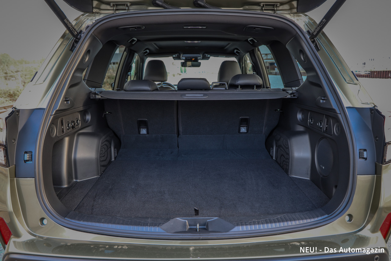 Auch im Fond überzeugt der Subaru Forester 2026 mit großzügigen Platzverhältnissen. Die Rückbank ist asymmetrisch geteilt und lässt sich bequem per Fernentriegelung vom Gepäckraum aus umklappen. Der Kofferraum selbst fasst 508 Liter und erweitert sich bei umgelegten Lehnen auf bis zu 1.679 Liter. Die nahezu ebene Ladefläche erleichtert das Verstauen sperriger Gegenstände erheblich. Zusätzlich stehen eine 12-Volt-Steckdose sowie mehrere Befestigungsösen zur Verfügung, was den Forester auch für transportintensive Einsätze interessant macht.