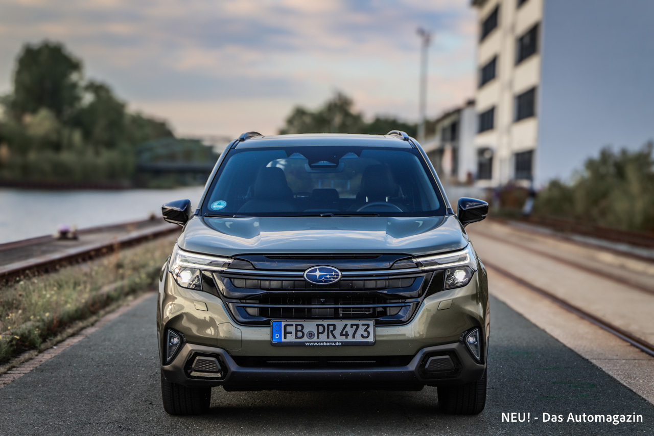 Der neue Forester bleibt sich auch 2026 im Kern treu, wirkt jedoch in vielen Details deutlich moderner und substanzorientierter als sein Vorgänger. Auffällig ist vor allem die neu gestaltete Frontpartie mit breiterem Kühlergrill und klar gezeichneten LED-Scheinwerfern, die dem Fahrzeug eine robustere Präsenz verleihen. Gerade in der Lackierung Autumn Green Metallic unterstreicht das Design den funktionalen Anspruch des Fahrzeugs, ohne dabei in eine überzeichnete Offroad-Optik abzudriften. Vielmehr entsteht ein stimmiges Gesamtbild, das sich klar von urban orientierten Lifestyle-SUVs abgrenzt und stärker auf Alltagstauglichkeit sowie Einsatzbreite ausgerichtet ist.
