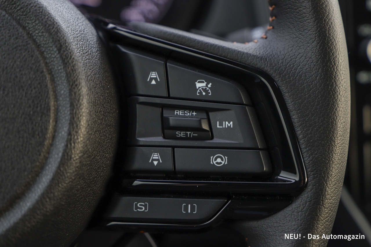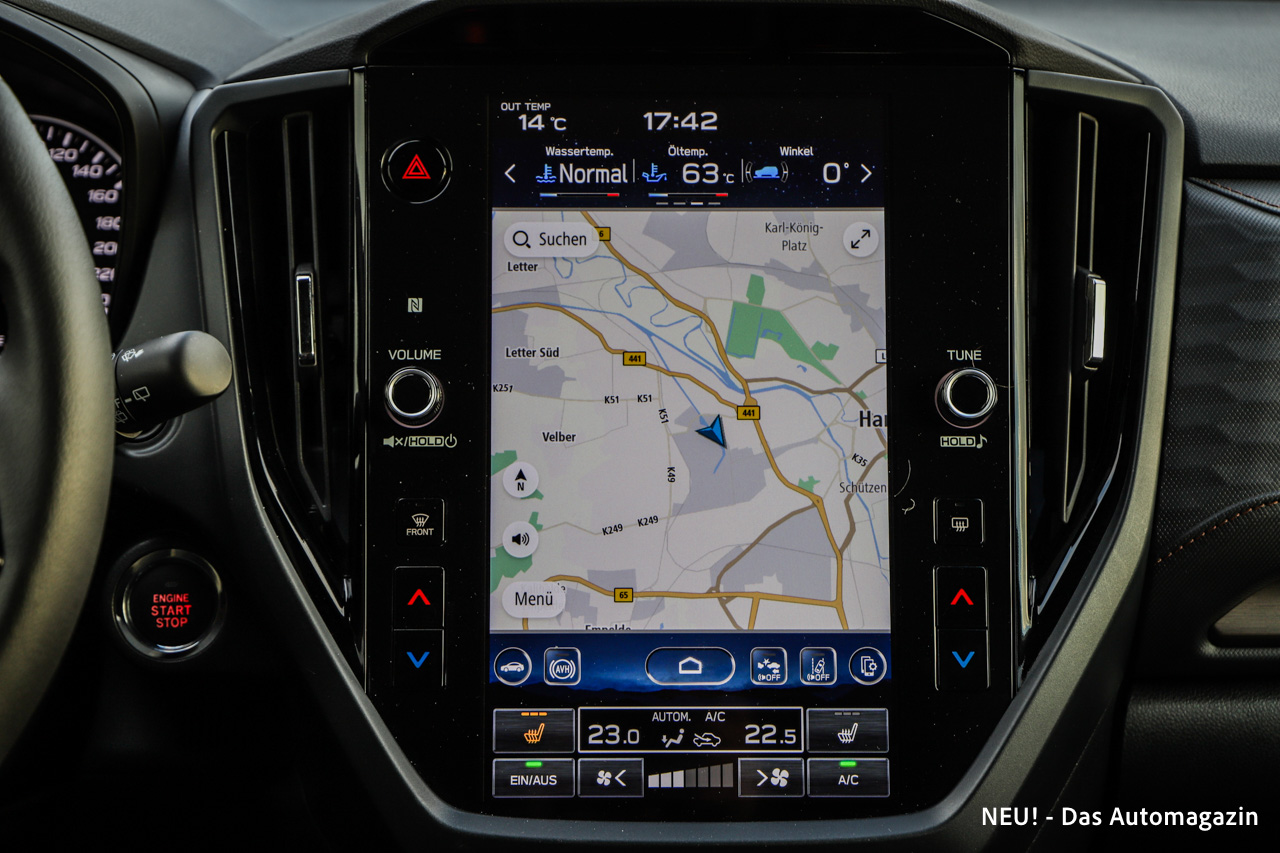Im Komfortbereich setzt Subaru auf eine praxisorientierte Ausstattung. Das beim Platinum-Modell serienmäßige Panorama-Glasschiebedach lässt sich elektrisch öffnen und trägt zur luftigen Innenraumwirkung bei. Für akustische Untermalung sorgt das ebenfalls serienmäßige Harman Kardon Soundsystem mit elf Lautsprechern inklusive Subwoofer, das durch einen angenehm warm abgestimmten Klangcharakter überzeugt und auch bei höheren Lautstärken nicht zu Verzerrungen neigt.