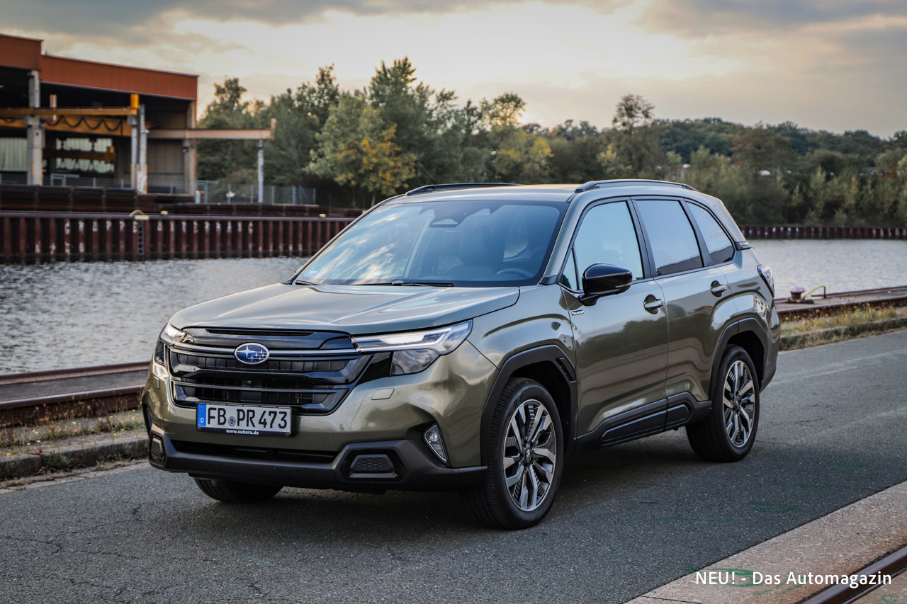 Das Topmodell Platinum startet bei 49.190 Euro und ergänzt die Ausstattung unter anderem um Ledersitze, ein Harman Kardon Soundsystem, Sitzheizung im Fond sowie 19-Zoll-Leichtmetallfelgen. Unser Testfahrzeug in Autumn Green Metallic lag inklusive Metallic-Lackierung für 780 Euro sowie einem Premium-Teppichmattensatz für 104 Euro bei einem Gesamtpreis von 50.074 Euro. Optional ist zudem eine abnehmbare Anhängerkupplung für 719 Euro erhältlich, die den Forester auch als Zugfahrzeug zusätzlich aufwertet. Die Anhängelast des Subaru Forester 2026 beträgt 1.870 Kilogramm gebremst beziehungsweise 750 Kilogramm ungebremst.