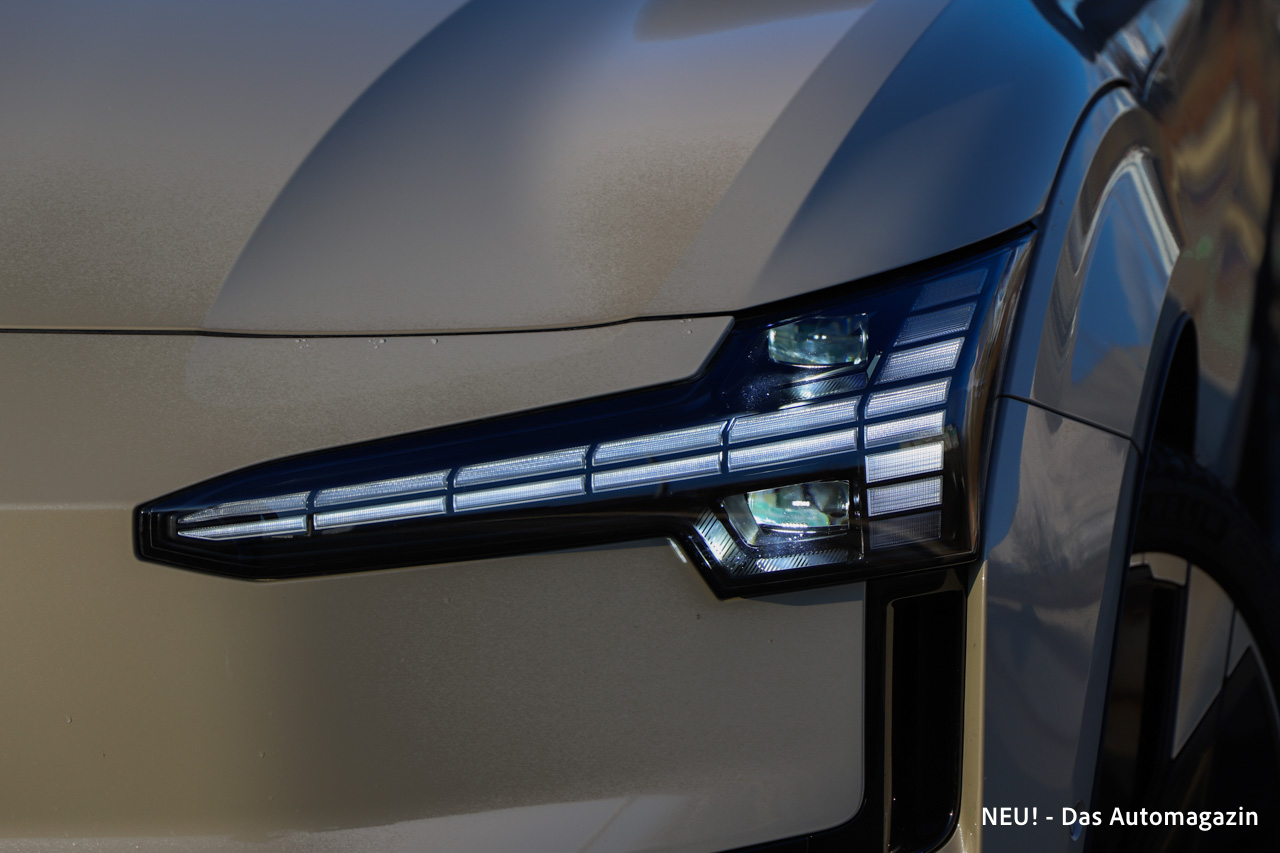 Beim Licht zeigt sich ein differenziertes Bild. Der Volvo EX30 2026 verfügt weder über Matrix-LED-Technik noch über eine Scheinwerfer-Reinigungsanlage. Dennoch überzeugen die serienmäßigen LED-Scheinwerfer mit einer sehr hellen, gleichmäßigen und homogenen Ausleuchtung. Die Fahrbahn wird breit und sauber ausgeleuchtet, das Fernlicht arbeitet zuverlässig und bietet eine gute Reichweite. In der Praxis entsteht ein hohes Sicherheitsgefühl bei Nacht, auch ohne adaptive Lichtfunktionen. Ergänzt wird das Technikpaket durch induktives Laden, ein hochwertiges Soundsystem und digitale Fahrzeugschlüssel.