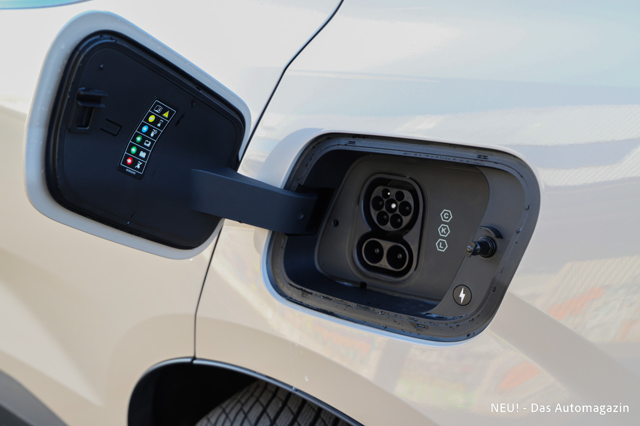 Die maximale Reichweite wird mit bis zu 450 Kilometern angegeben. Im gemischten Betrieb lassen sich rund 300 Kilometer realistisch darstellen. Bei überwiegender Autobahnfahrt sinkt der Aktionsradius deutlich (circa 200-220 Kilometer), insbesondere bei konstant höheren Geschwindigkeiten. Für den urbanen Alltag, Pendelstrecken und Wochenendausflüge reicht die Reichweite jedoch problemlos aus.