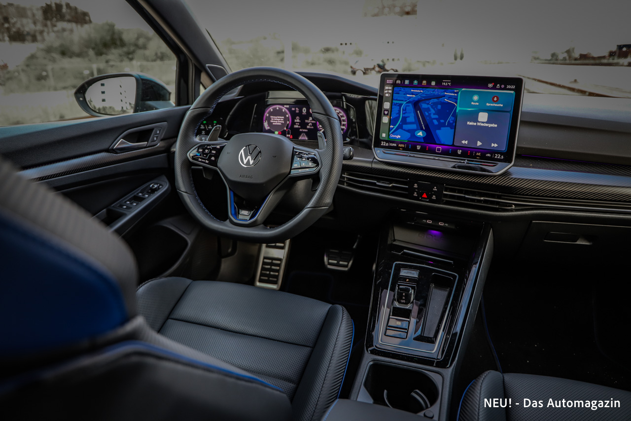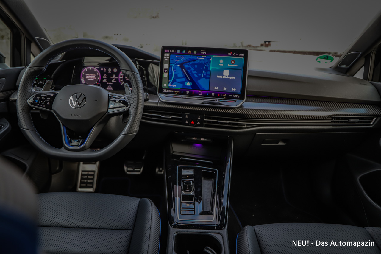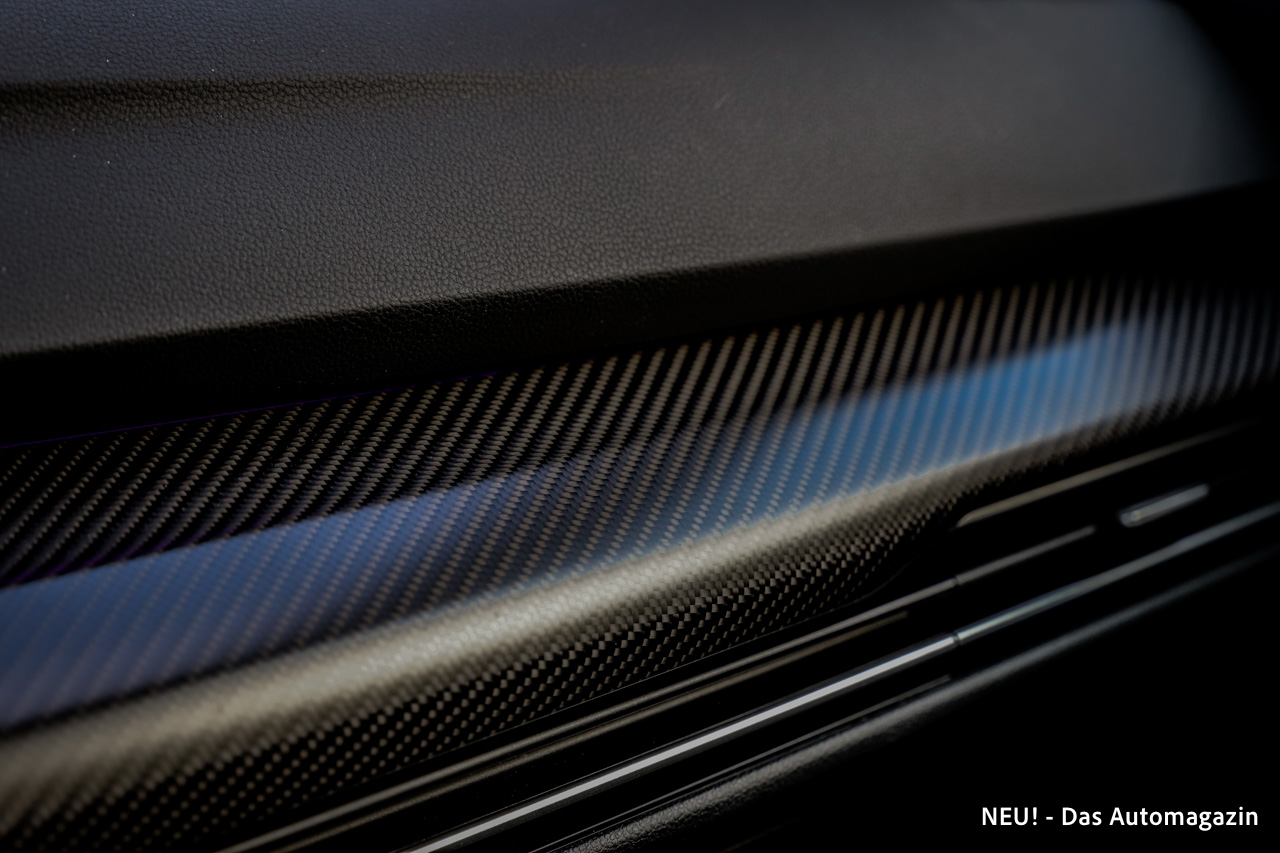 Auch bei der Materialwahl hat Volkswagen nicht gespart. Nappa-Leder, Carbon-Dekore und hochwertige Oberflächen verleihen dem Innenraum eine spürbar edlere Atmosphäre als im normalen Golf.