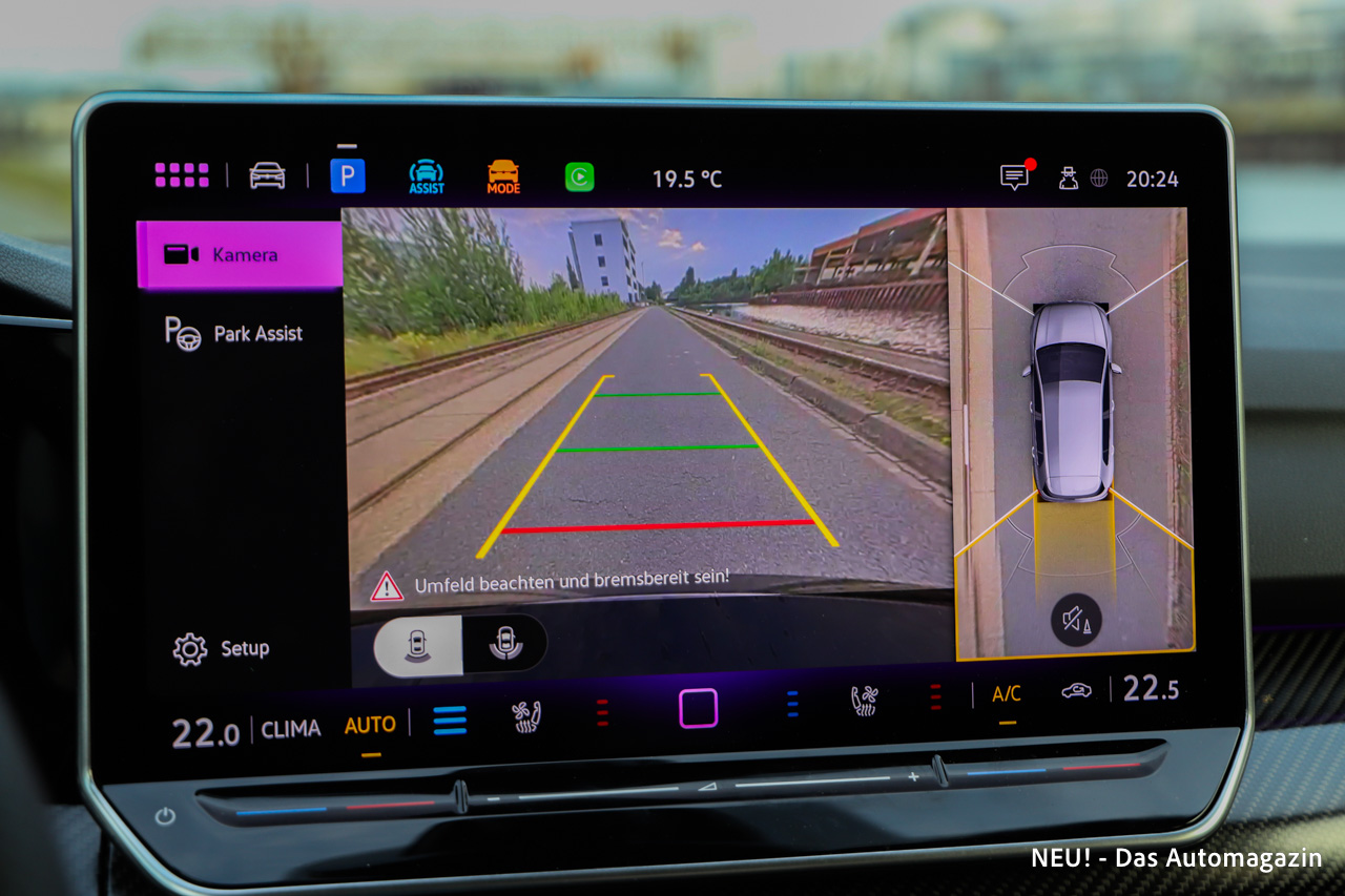 Unser Testwagen war darüber hinaus mit einer Reihe zusätzlicher Optionen ausgestattet. Besonders hervorzuheben ist das Komfortpaket mit Park Assist Plus und Side Assist, das Einparken und Spurwechsel deutlich erleichtert. Ergänzt wird das Ganze durch die 360-Grad-Kamera „Area View“, die zusammen mit der Rückfahrkamera einen sehr guten Überblick beim Rangieren liefert. Gerade in engen Parkhäusern oder in der Stadt ist das ein echter Vorteil.