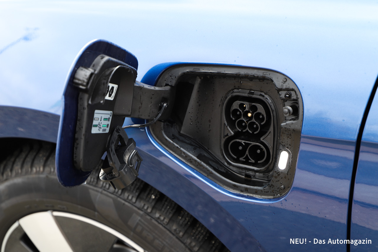 Der Verbrauch bleibt trotzdem niedrig. Mit vollem Akku sank der ermittelte Durchschnitt auf 1,9 Liter pro 100 Kilometer. Mit leerem Akku pendelte sich der Passat bei etwa sechs Litern ein. Das ist für einen Kombi seiner Größe ein guter Wert. Beim Laden zeigt sich ein differenzierter Eindruck. Der Passat verfügt über eine Schnellladefunktion, die laut Werksangabe bis zu 50 kW ermöglichen soll. In der Praxis erreichten wir jedoch nur etwa die Hälfte. Mehr als 25 kW waren nicht möglich, unabhängig von der Säule. Die Wartezeit verlängert sich dadurch spürbar. Statt der angepeilten 26 Minuten dauerte der Ladevorgang bis 80 Prozent rund 46 Minuten. Eine vollständige Ladung dauerte knapp 76 Minuten. AC-Laden arbeitet wie erwartet deutlich langsamer, bleibt aber planbar.