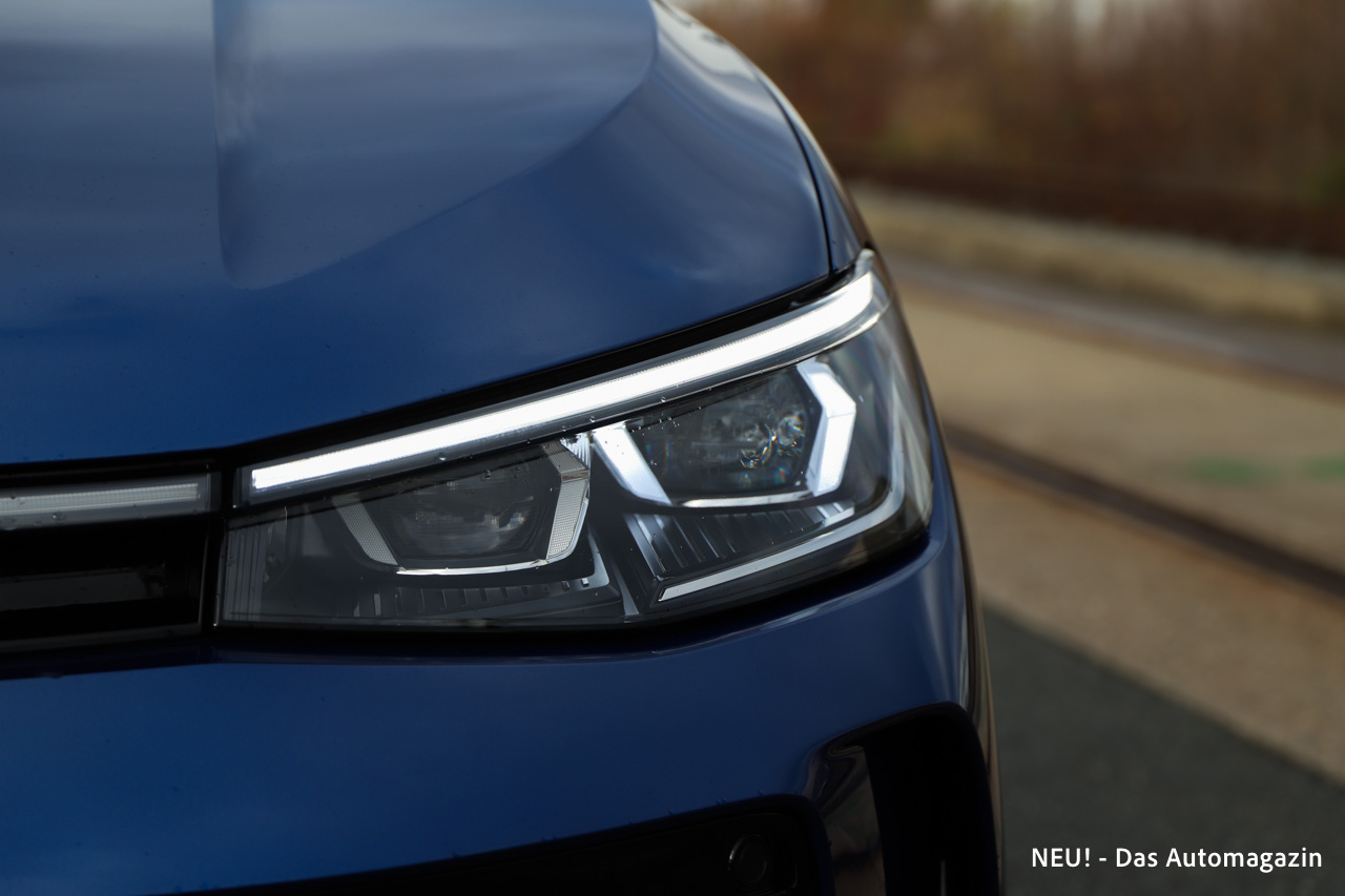 Die Ausstattungslinie Elegance bietet viele Details, die den Anspruch an Komfort und Technik klar definieren. Serienmäßig stehen Matrix-LED-Scheinwerfer, eine elektrische Heckklappe, Klimaautomatik, Navigationssystem sowie zahlreiche Assistenzsysteme bereit. Der Passat setzt auf moderne IQ.Light Technologie, die mit sauberer Ausleuchtung und einem Verhaltensmuster überzeugt, das eher an Oberklassemodelle erinnert. Die Verkehrszeichenerkennung arbeitet zuverlässig. Im optionalen IQ.Drive-Paket erweitert sich der Funktionsumfang um Travel Assist, adaptiven Tempomaten und eine 360-Grad-Kamera. Gerade Letztere macht den großen Kombi leichter beherrschbar. Das Head-up Display projiziert klare Informationen ins Sichtfeld und wirkt erstaunlich dezent.