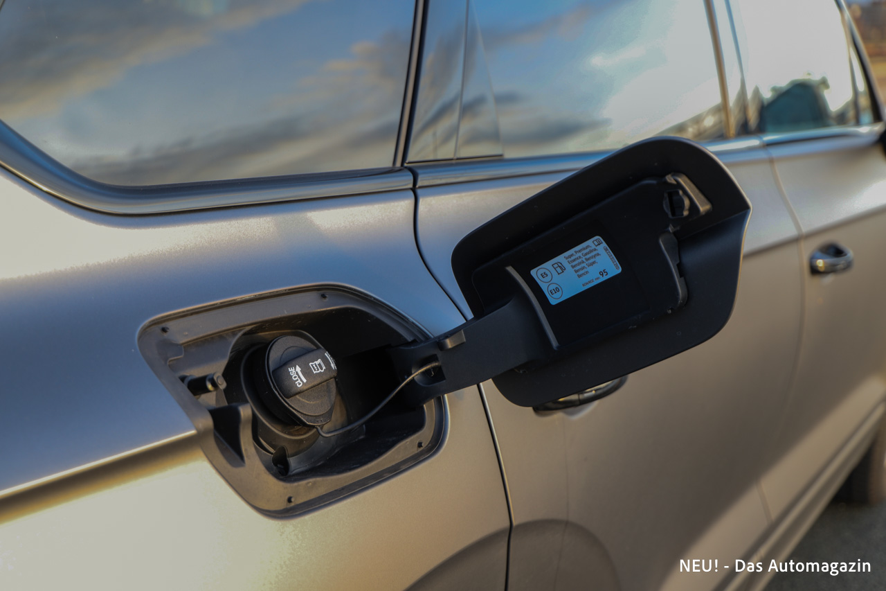 Im realen Fahrbetrieb verschiebt sich das Bild deutlich. Mit entladenem Akku nennt der Hersteller einen kombinierten Verbrauch von 9,4 Litern Super auf 100 Kilometer. In unserem Drittelmix aus Stadtverkehr, Landstraße und Autobahn lag der durchschnittliche Verbrauch bei 8,5 Litern pro 100 Kilometer – und damit unterhalb der offiziellen Herstellerangabe.