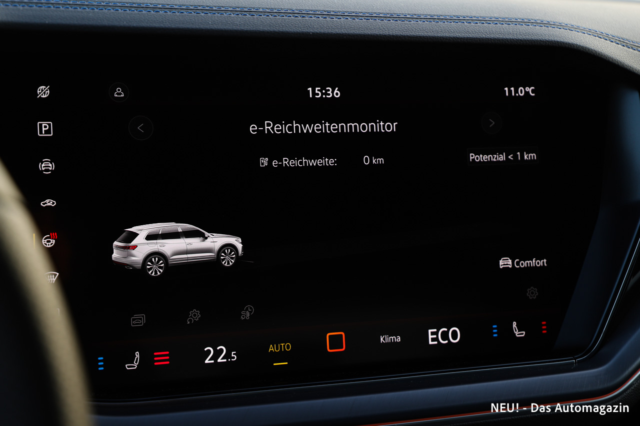 Mit seinem 75-Liter-Tankvolumen bleibt der Touareg zudem ein klassisches Langstreckenfahrzeug. Je nach Fahrprofil sind Reichweiten jenseits der 800-Kilometer-Marke möglich, ohne eine Ladestation ansteuern zu müssen.