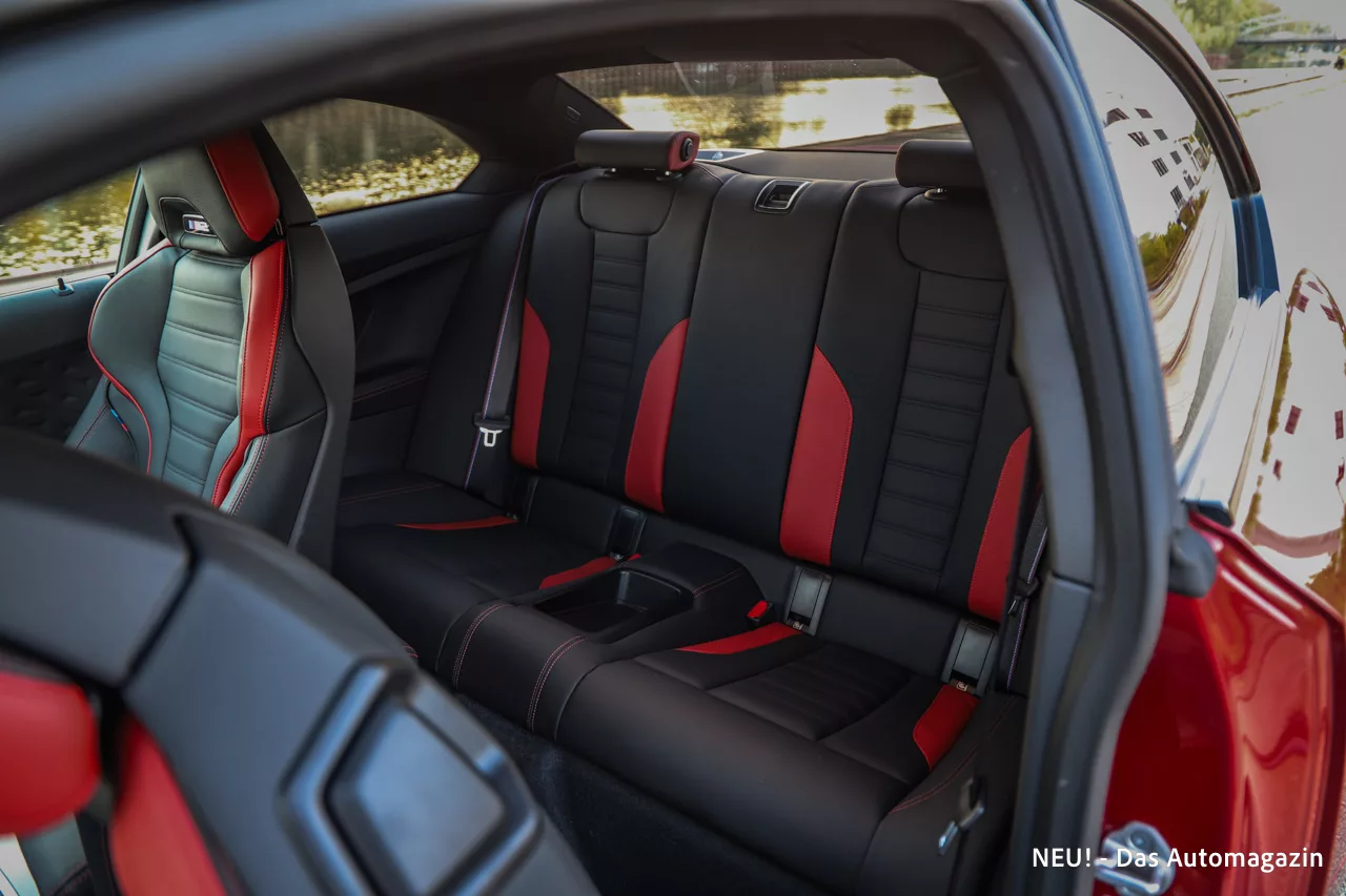 Im Fond herrscht Coupé-Realität. Eng, funktional, für kurze Strecken ausreichend. Der Kofferraum bietet mit 390 Litern mehr Nutzwert, als man dem bulligen Format zutrauen würde, bleibt aber natürlich Nebensache. Wichtiger ist die Atmosphäre, die der Innenraum erschafft. Ein Ort für Menschen, die fahren wollen. Keine Show, kein überflüssiger Zierrat. Nur das, was ein echter M braucht, um seine Wirkung zu entfalten.