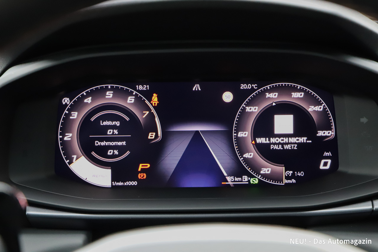 Obwohl die Mehrleistung klar zu spüren ist, präsentiert sich der Cupra Terramar VZ ABT im Alltag überraschend effizient. Im Drittelmix liegt der Testverbrauch bei 9,2 Litern auf 100 Kilometer. Das sind lediglich 0,2 Liter mehr als beim serienmäßigen Terramar VZ. Der Wert zeigt, dass der Motor trotz Leistungsplus nicht übermäßig durstig wird. Auf der Autobahn benötigt das SUV 8,9 Liter, gemessen bei zügiger Fahrweise bis etwa Tempo 160. Das passt gut zur Positionierung des Terramar, der zwar sportliche Qualitäten bietet, aber nicht durch extreme Verbrauchsspitzen auffällt. Gleichzeitig zeigt die Sparrunde, dass sich das Modell durchaus zurücknehmen kann. Mit 6,4 Litern bleibt der Wert nur leicht über dem Serienmodell und damit klar im grünen Bereich.