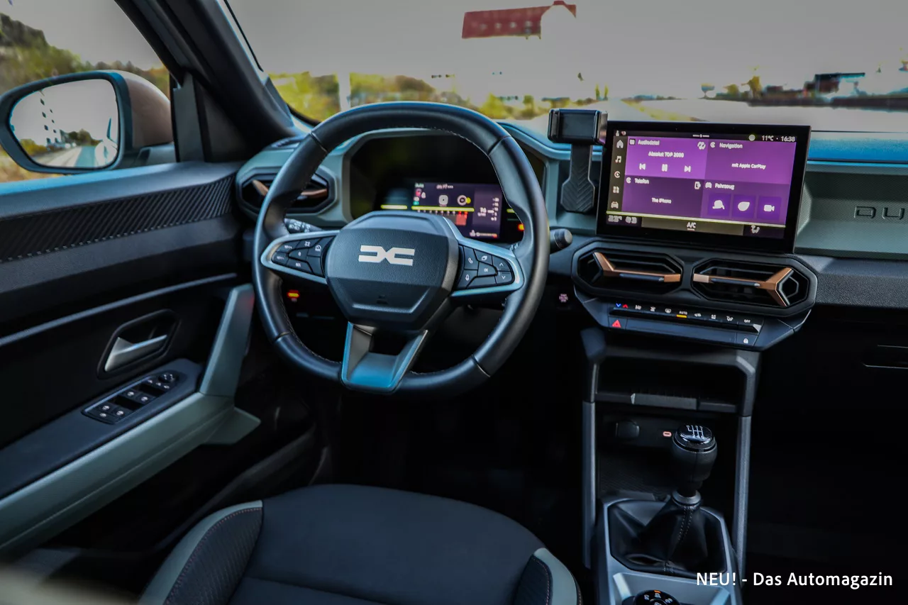 Das Infotainment spielt derweil in einer ganz anderen Liga: Der 10-Zoll-Bildschirm reagiert schnell, CarPlay/Android Auto laufen kabellos und stabil, das Headunit-Layout wirkt durchdacht. Dazu kommen induktives Laden, neue USB-C-Ports, eine elektrische Parkbremse und in der Topausstattung sogar Ambientebeleuchtung. Dass unser Testwagen keine Sitzheizung vorweisen konnte, fanden wir etwas befremdlich. Die gibts allerdings – und zwar im Winter-Plus-Paket. Für 540 Euro Euro stehen dann neben Sitzheizung vorne auch eine Lenkradheizung (ebenfalls neu bei Dacia) und eine beheizbare Frontscheibe bereit. Perfekt für alle Frostbeulen unter uns.