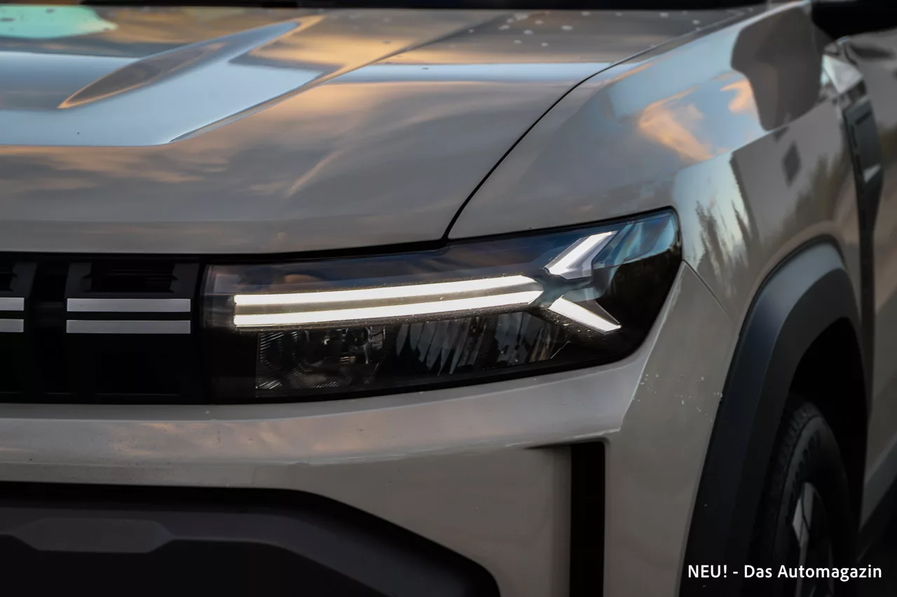 Beim Licht bleibt der Duster pragmatisch: serienmäßig helles LED-Abblendlicht, Halogen-Fernlicht. Funktioniert – mehr erwartet man nicht, weniger wäre enttäuschend.