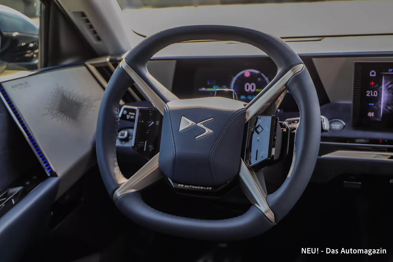 Zum echten Komfortfaktor wird der Franzose durch das optionale „Absolute Comfort Pack“. Darin enthalten sind beheizte, belüftete und massierende Sitze, eine Lenkradheizung und der bereits erwähnte DS Neck Warmer. Ergänzt wird das Ganze durch das Focal Electra 3D Soundsystem, das die Fahrt in einen Konzertsaal verwandelt – glasklar, satt und raumfüllend. Das System gehört zu den besten, die derzeit in dieser Klasse verbaut werden.