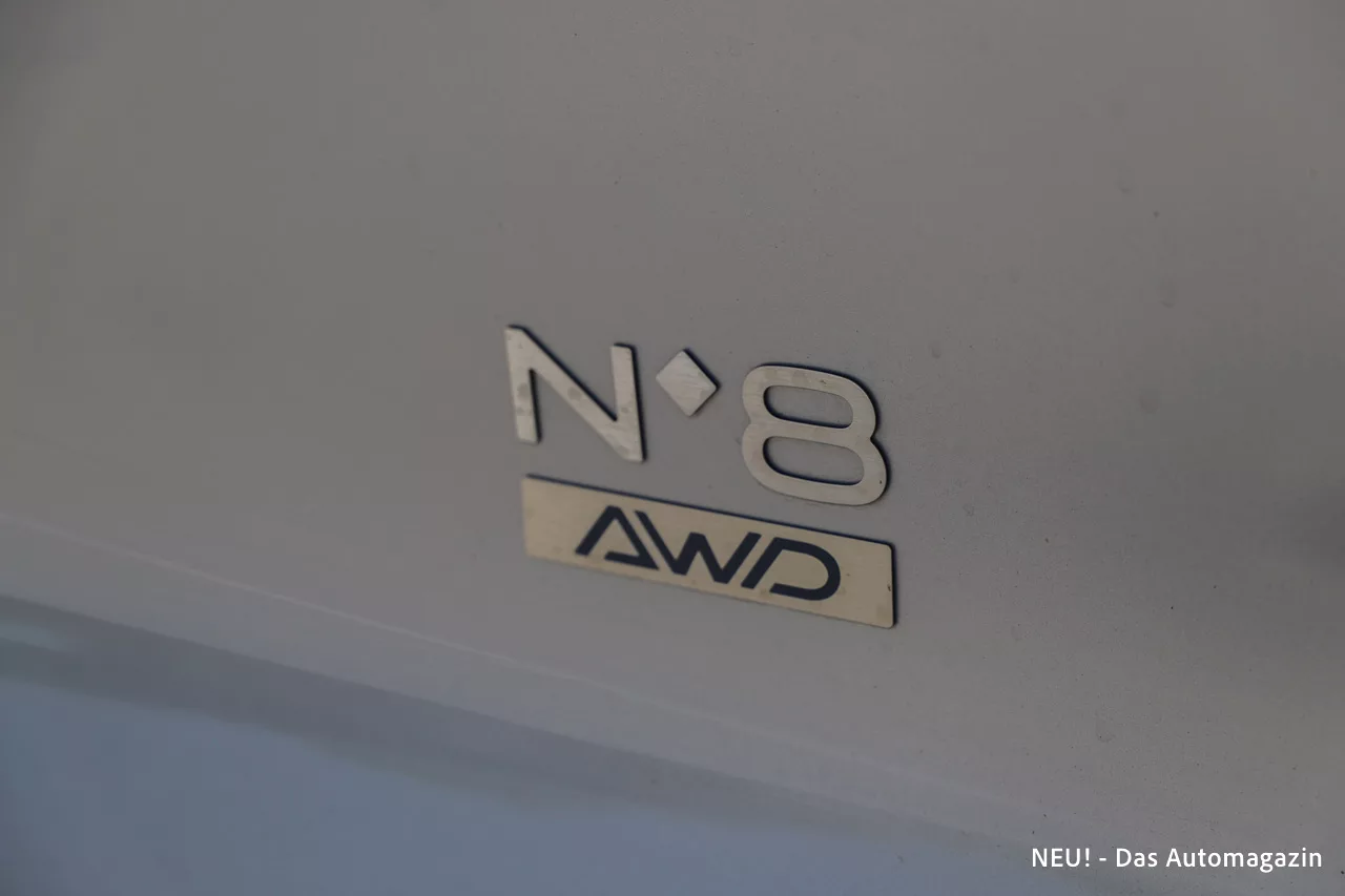 Die Lenkung arbeitet angenehm direkt und bietet für ein Elektrofahrzeug erfreulich viel Rückmeldung. Besonders auf kurvigen Landstraßen zeigt der No.8, dass er nicht nur gleiten, sondern auch zupacken kann. Der tiefe Schwerpunkt und der Allradantrieb sorgen für ein neutrales Fahrverhalten, auch wenn man es eilig hat.