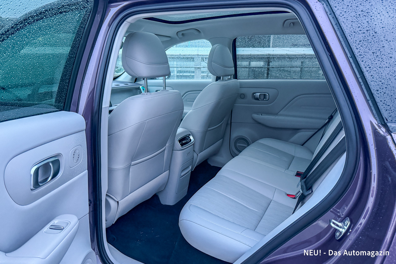 Vorne sitzt man luftig, hinten ebenfalls. Die Platzverhältnisse wirken großzügiger, als es die reinen Außenmaße vermuten lassen. Gerade in der zweiten Reihe macht sich das Fehlen eines Kardantunnels bemerkbar – der mittlere Platz ist tatsächlich nutzbar und nicht nur eine theoretische Option für kurze Strecken.