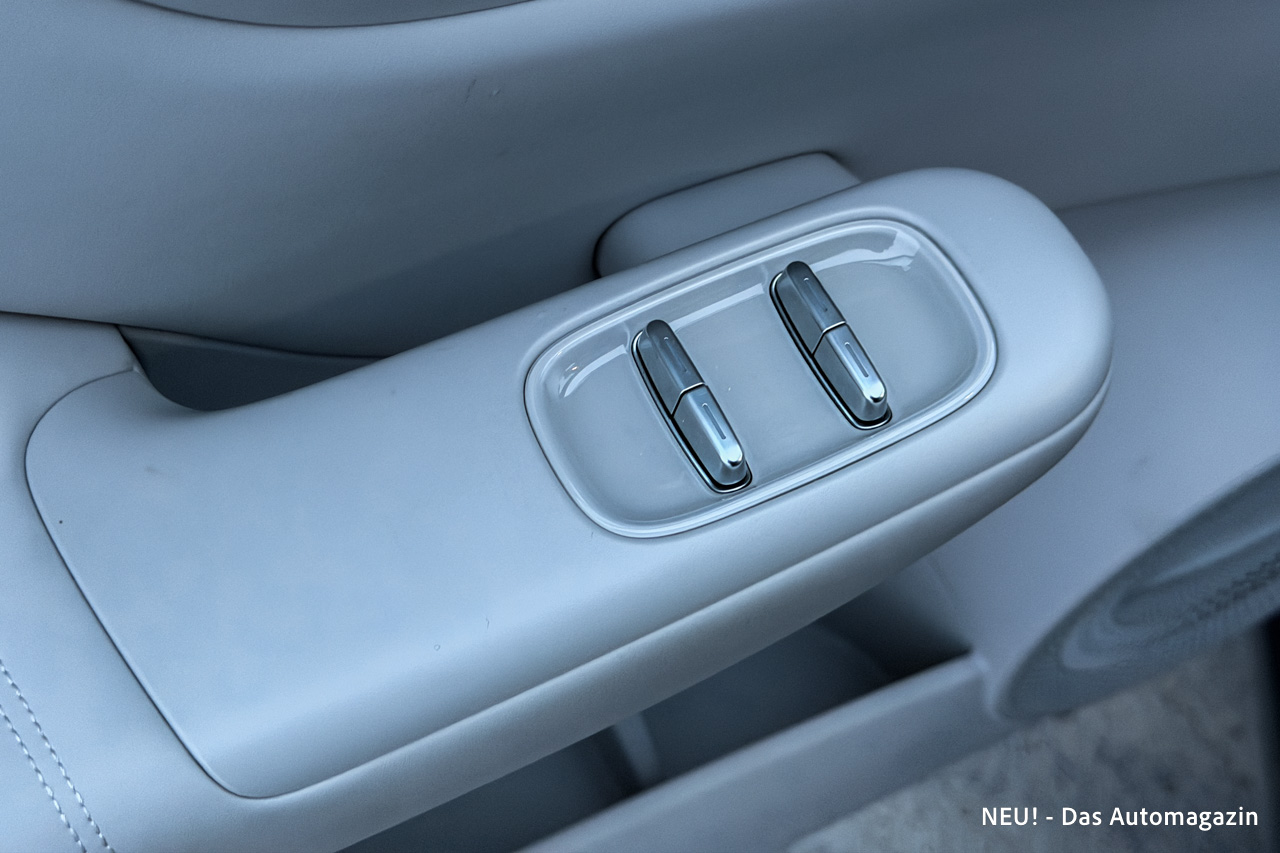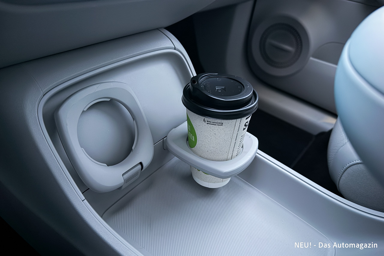Zum Beispiel die ausklappbaren Getränkehalter vorne. Sie funktionieren – keine Frage. Aber sie wirken nicht so, als würden sie das Auto über Jahre hinweg begleiten wollen. Eher wie ein Bauteil, das man im Zweifel lieber mit Vorsicht behandelt. Genau solche Kleinigkeiten sind es, die den ansonsten sehr modernen Eindruck plötzlich erden.