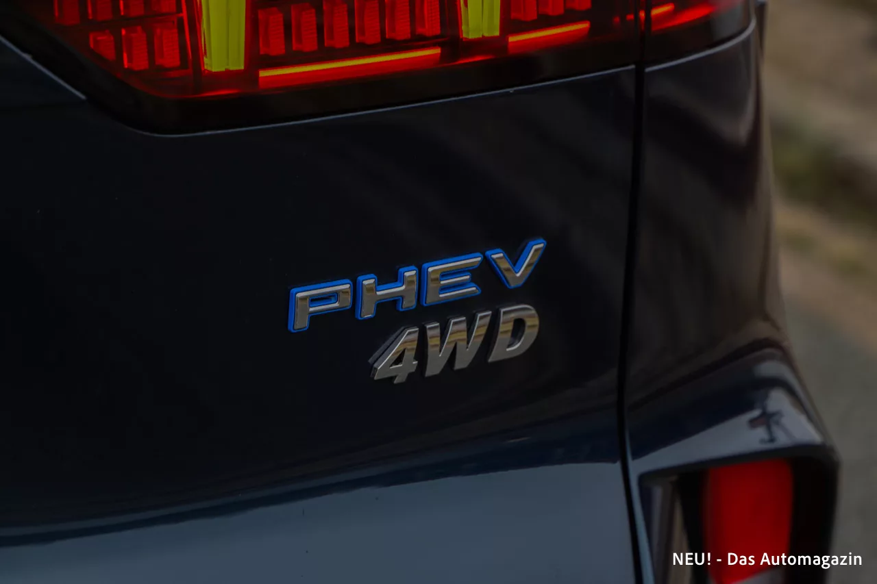 Mit leerem Akku zeigte sich ein Drittelmixverbrauch von 8,9 Litern pro 100 Kilometer. Das liegt etwas über der Werksangabe, bewegt sich aber für ein SUV dieser Größe im realistischen Rahmen. Auf der Sparrunde konnten wir den Verbrauch auf 6,9 Liter drücken, was angesichts des Gewichts des Fahrzeugs ein gutes Ergebnis darstellt. Interessant ist das Zusammenspiel zwischen Verbrenner und E-Motoren. Selbst bei leerem Akku verbleibt ein kleiner Energievorrat, der für Boostsituationen genutzt wird. Dadurch wirkt das Ansprechverhalten nie träge.